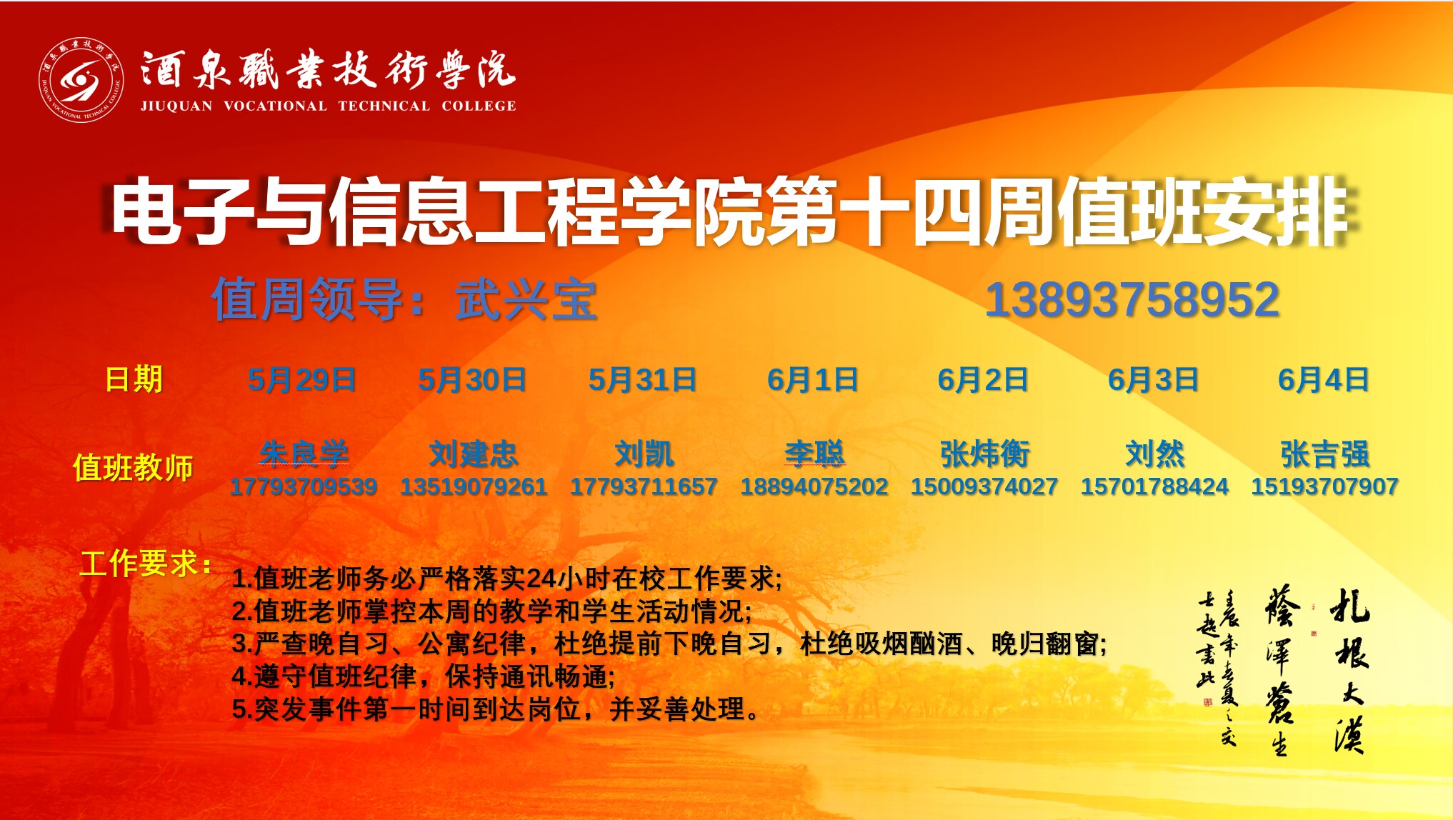 第十四周值周安排(5.29-6.4)