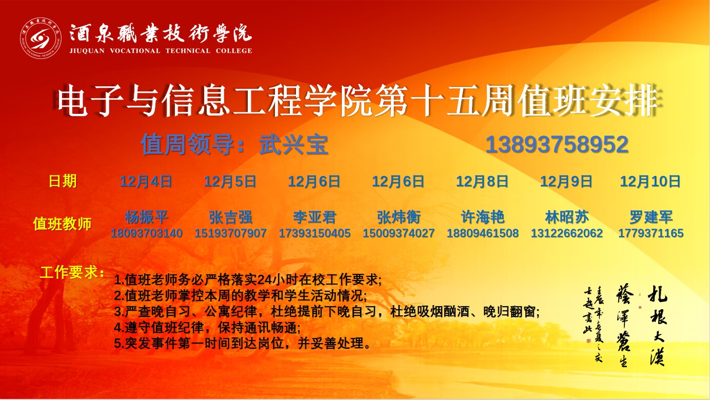 第十五周值周安排(12.4~12.10)