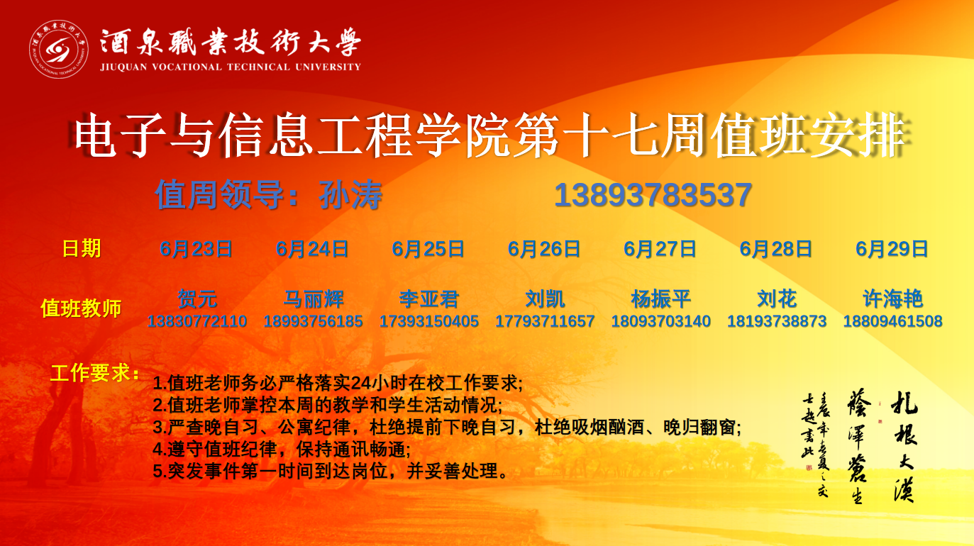 第十七周值周安排(6.23-6.29)