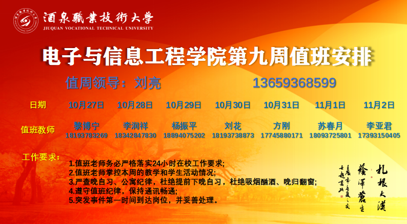 第九周值班安排(10.27-11.02)