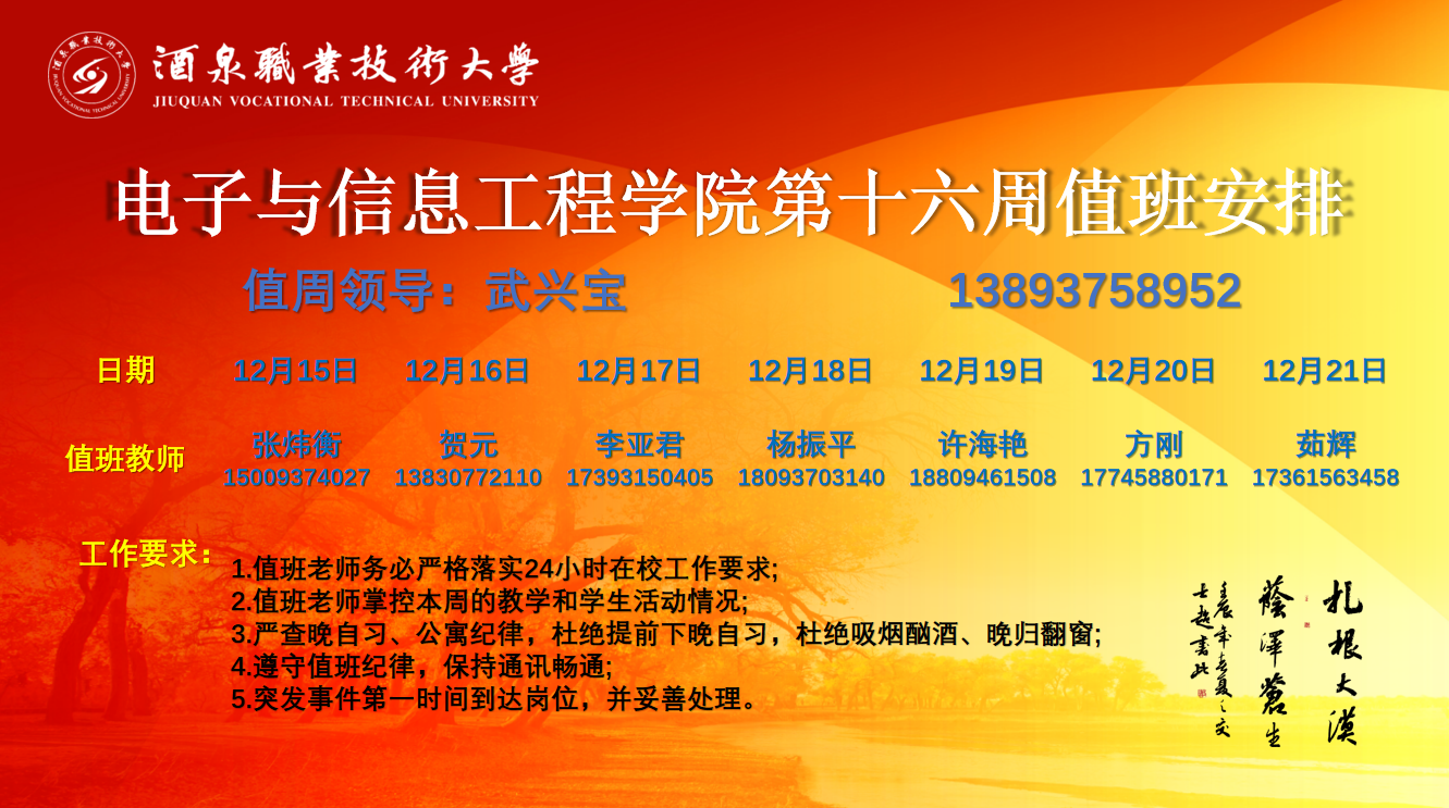 第十六周值班安排(12.15-12.21)