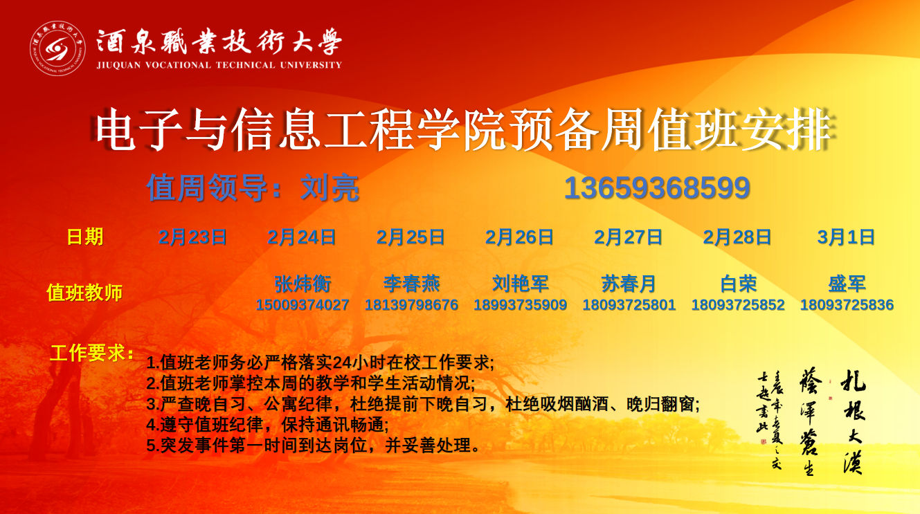 预备周值班安排(2.24-3.1)