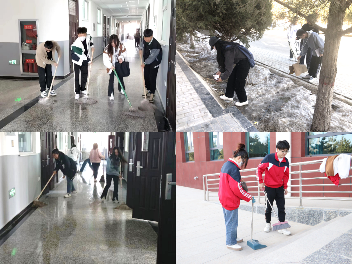 随着学院新学期弘毅楼面各专业投入使用,开展了“学雷锋”弘毅楼卫生清扫专项活动,全院师生积极响应行动。志愿者们对教学场所走廊、楼道、卫生间等公共区域进行清扫冲洗。在大家的共同努力之下,校园周围的环境焕然一新,整洁美观、舒适。今后,全体师生将继续用实际行动大力弘扬雷锋精神和“奉献、友爱、互助、进步”的志愿服务精神。