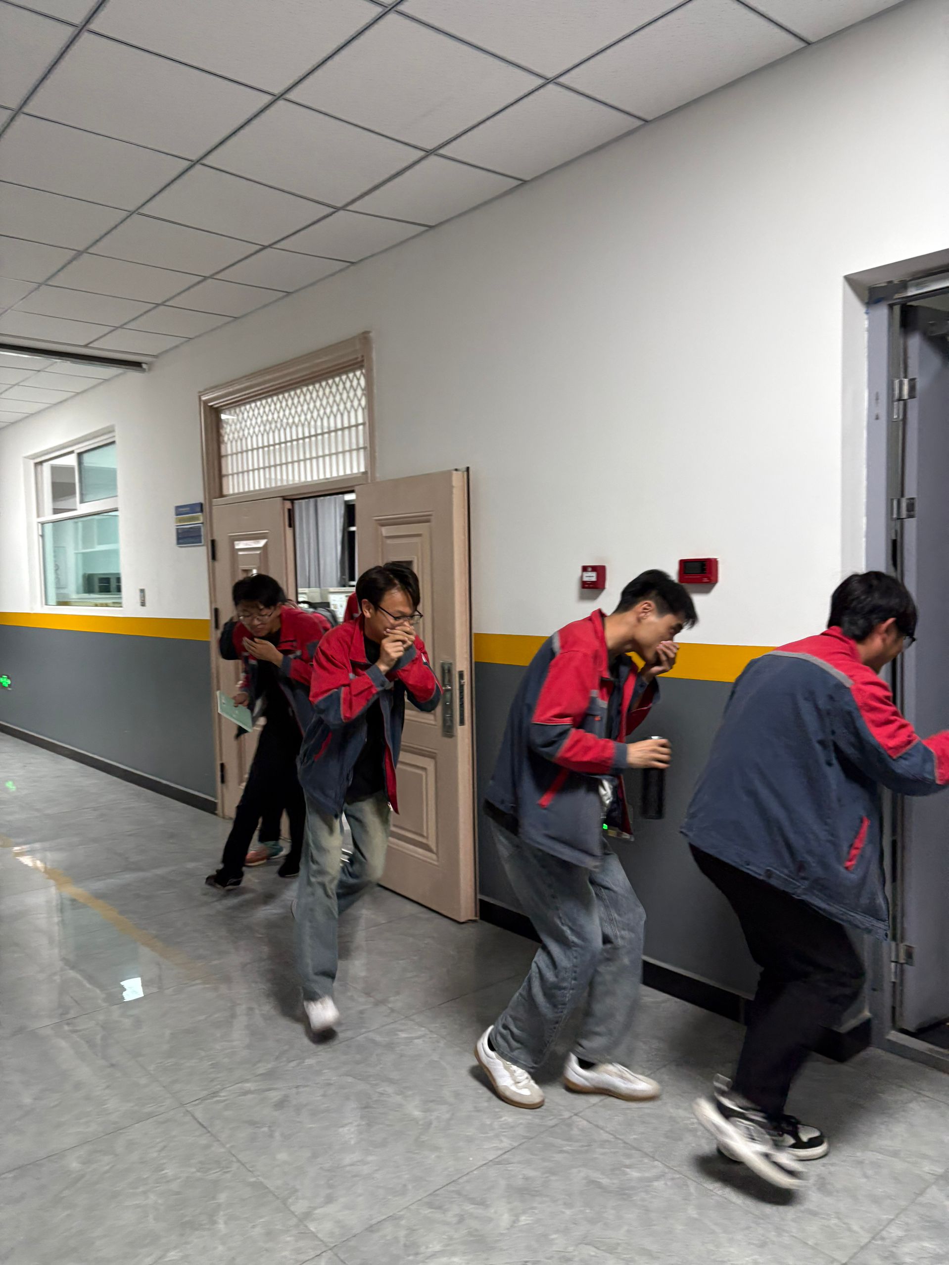 21时30分,格物楼消防警报响起,参演师生迅速进入应急状态,在安全员“保持间距、有序撤离”的指令下,规范采用低姿捂鼻等方式沿预定路线撤离,全员用时3分50秒从格物楼安全转移至悦健体育场集结地。
