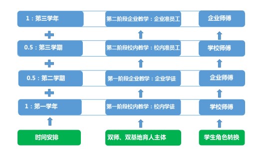 职业素养、项目完成情况(工作业绩)、理论知识 | 校企“双主体”考核 | 学校、企业 | 跟岗实习、顶岗实习 |