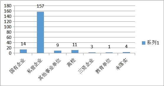 学院毕业生就业单位多达30余家,大部分为学院合作企业,其次为事业单位或者高校,就业单位性质流向图如下: