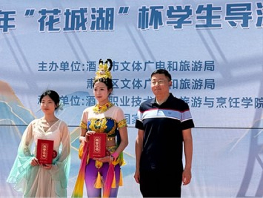 为深化教学成果,提升学生实践技能,2025年6月15日,由酒泉市文体广电和旅游局、肃州区文体广电和旅游局指导,酒泉职业技术大学旅游与烹饪学院联合花城湖景区承办的 “展专业技能·绘文旅新篇”2025年“花城湖”杯学生导游讲解技能大赛,在花城湖风景区成功举办。来自旅游与烹饪学院的选手同台竞技,以专业风采诠释丝路文旅魅力。