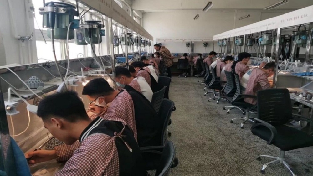 与甘肃金钰琦源商贸有限公司产教融合、校企共建“校中厂”,校内建有玉雕大师工作室、玉器雕刻、玉器切料、玉器抛光、玉器数控、玉器雕刻陈列及营销、电脑起版、电子商务摄影棚、专业画室等13个实训室,校内专业实训基地生均建筑面积5.7平方米。