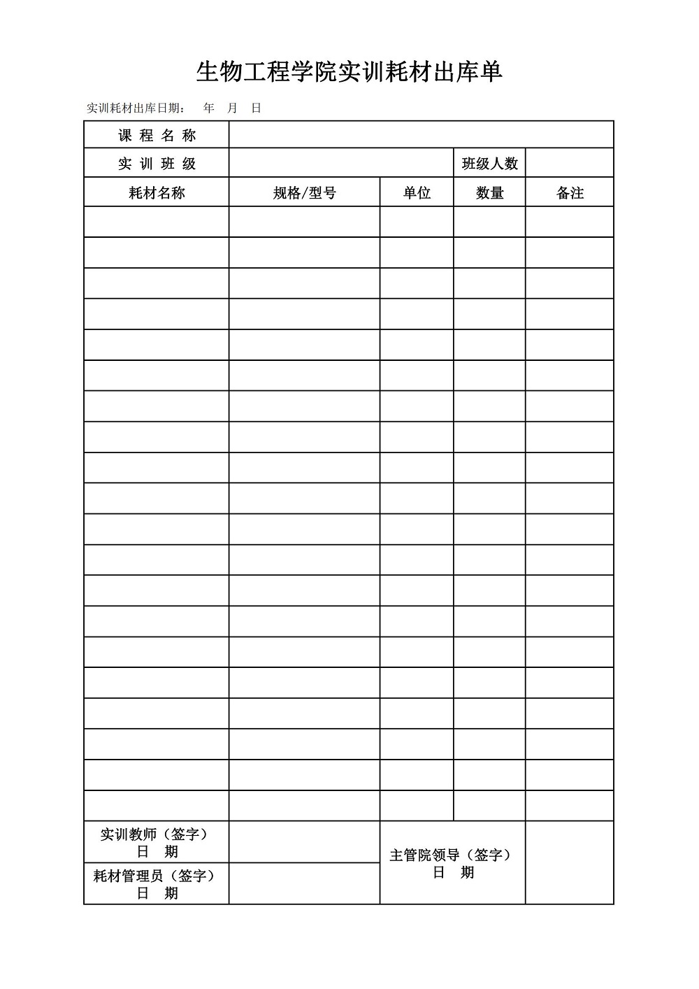 生物工程学院实训耗材出库单