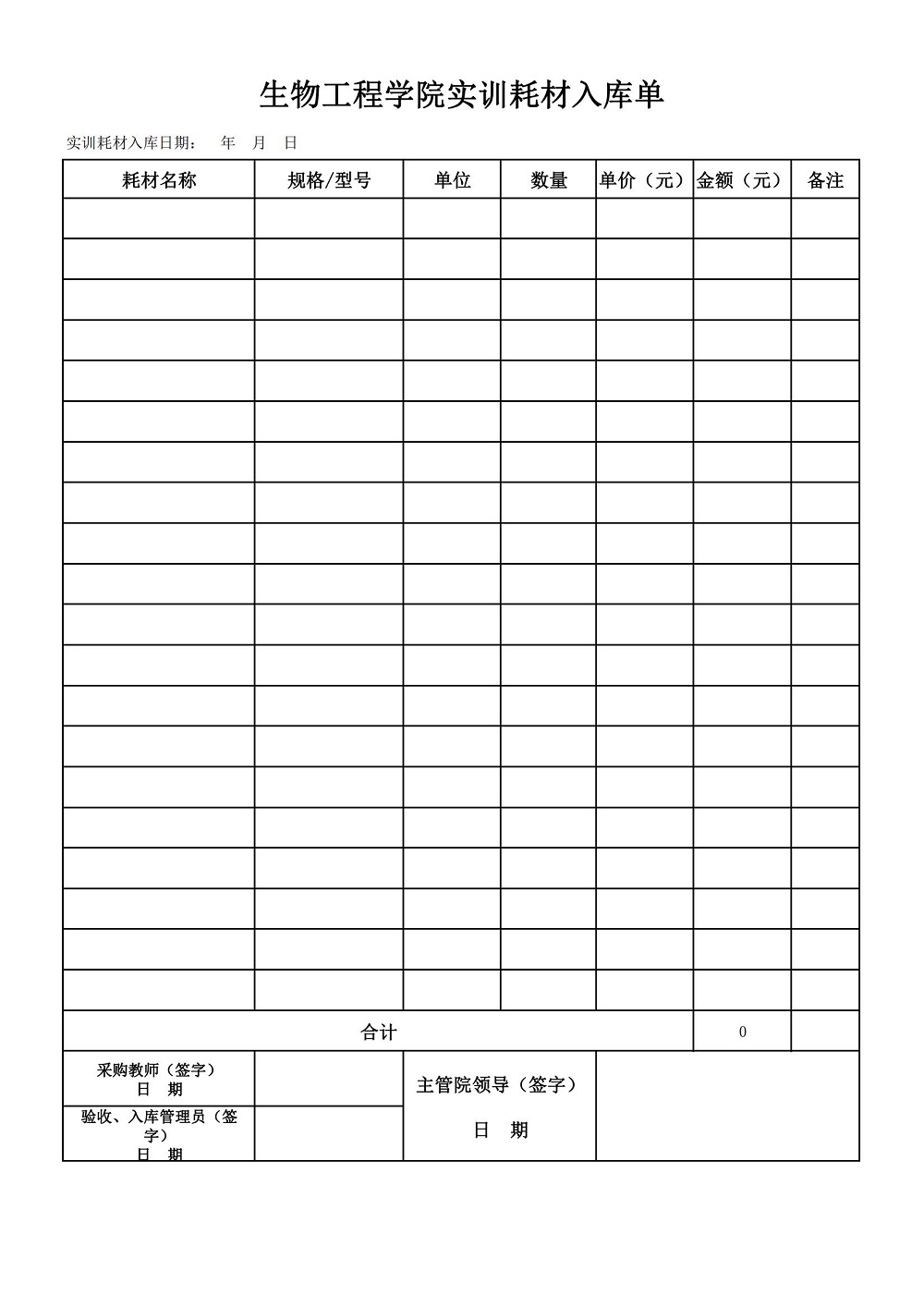 生物工程学院实训耗材入库单