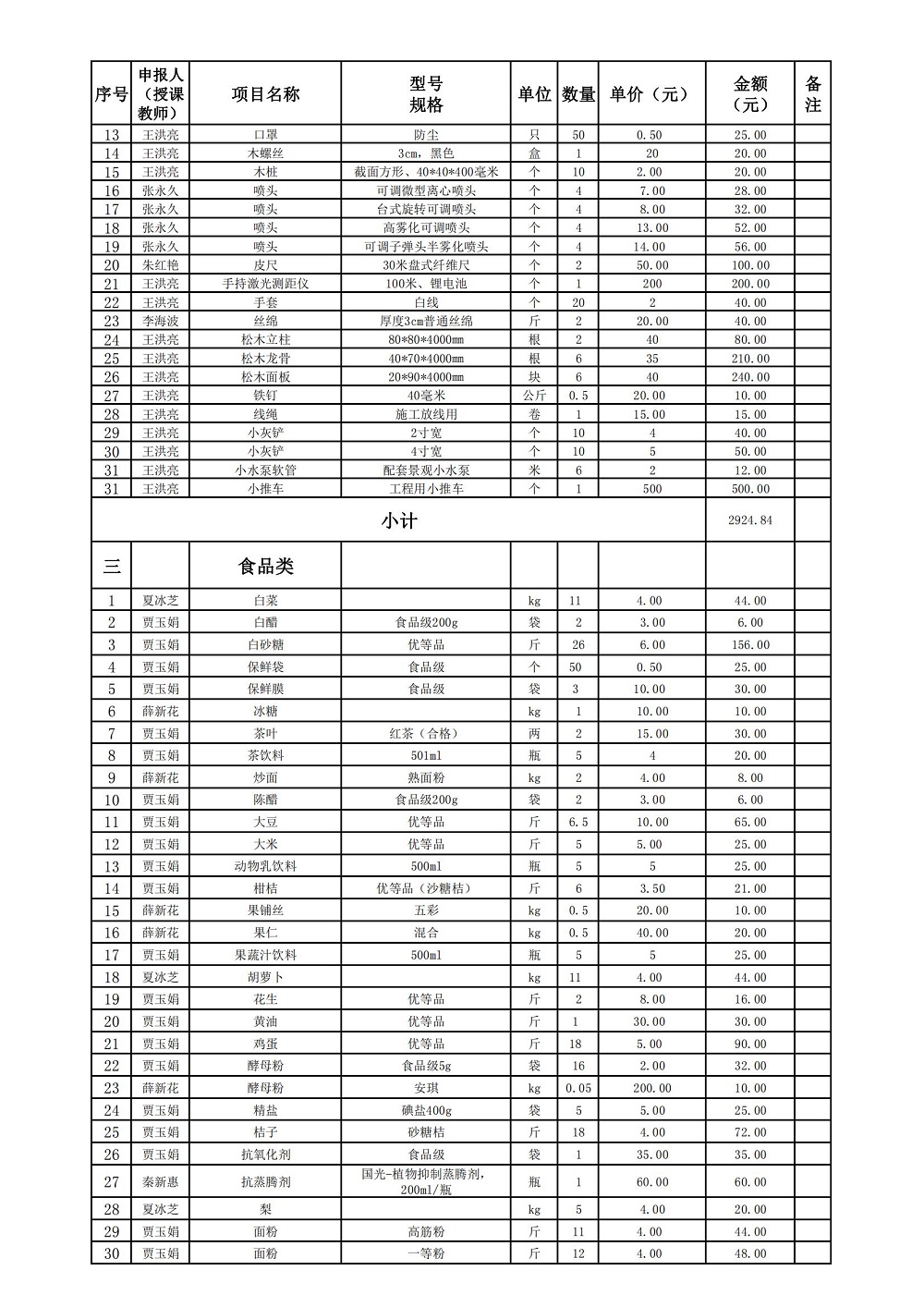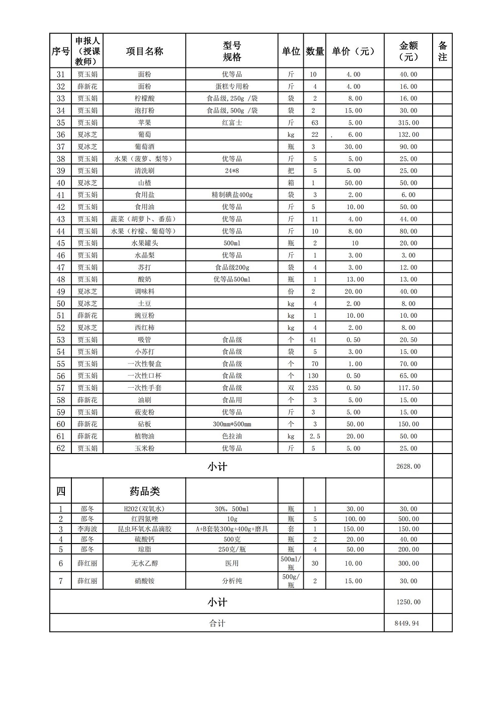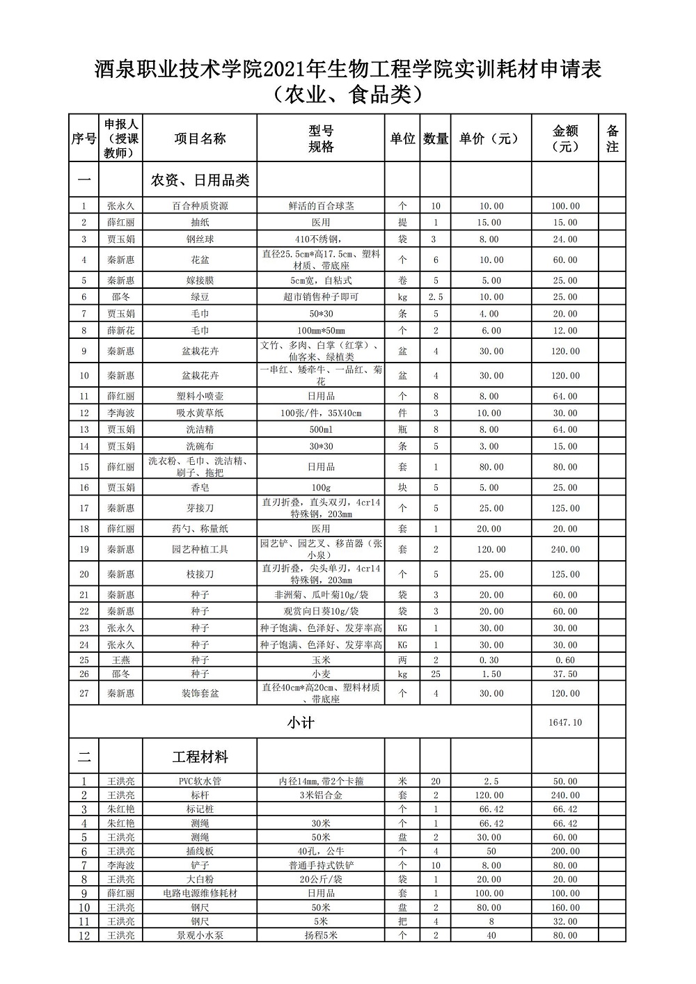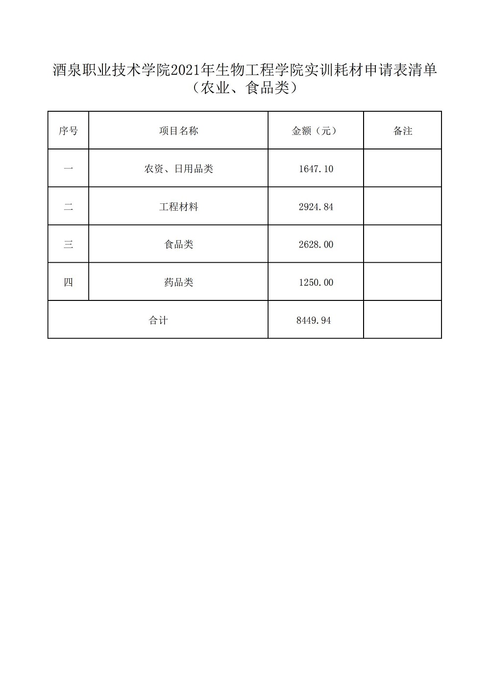 生物工程学院2021-2022学年第一学期实训耗材计划