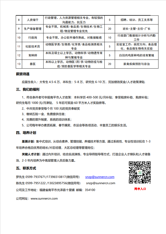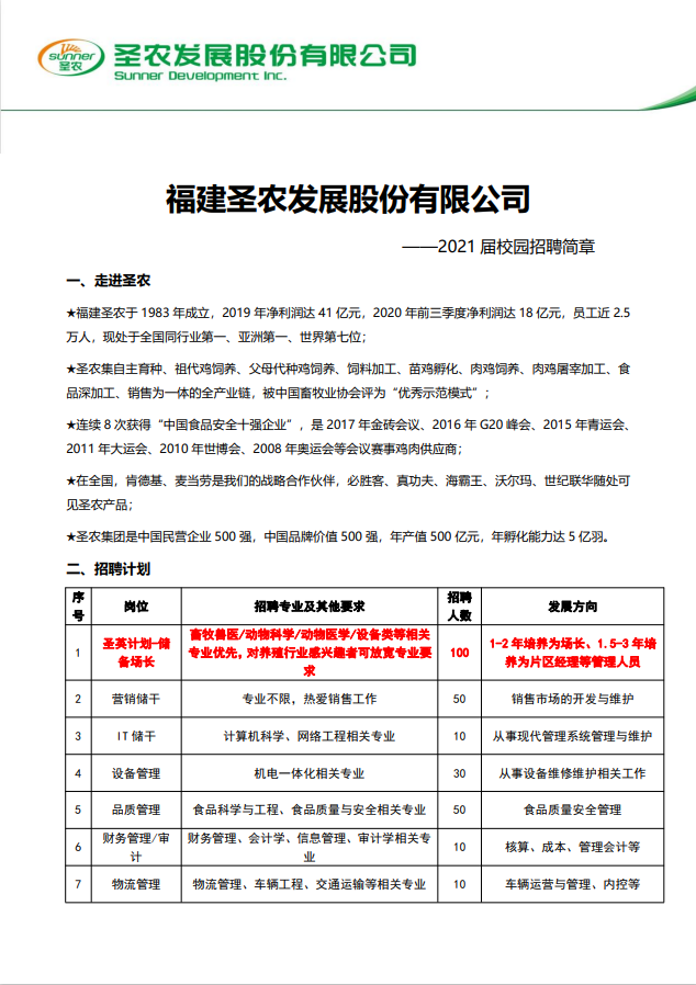 福建圣农招聘简章