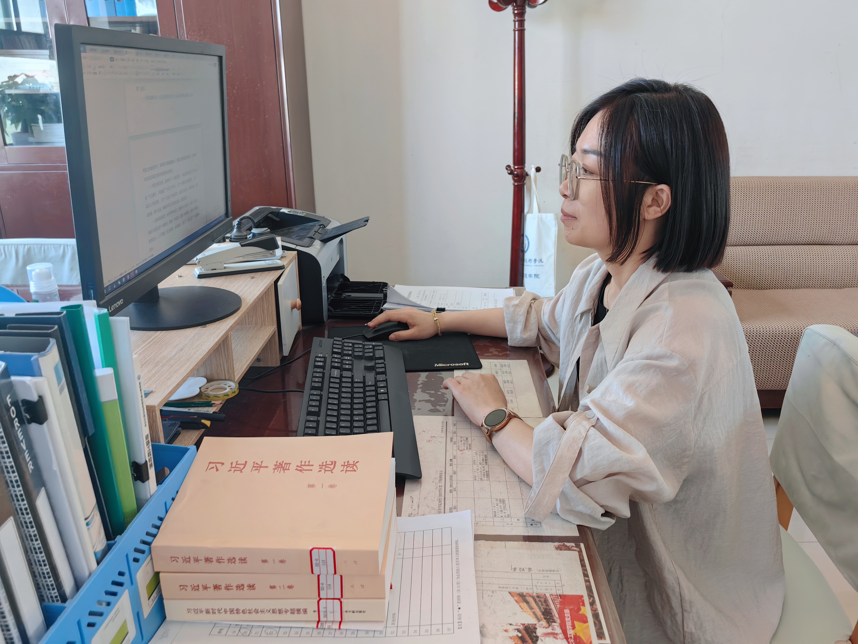 苏玲莉,土木工程学院教师,中共党员,硕士研究生,2019年6年毕业于西安工程大学,同年8月就职于酒泉职业技术学院土木工程学院,目前担任支部党务干事,以“党性最强、作风最正、工作出色”为具体要求,从思想上、作风上加强自身建设,恪尽职守、辛勤工作,主要表现在以下几个方面。