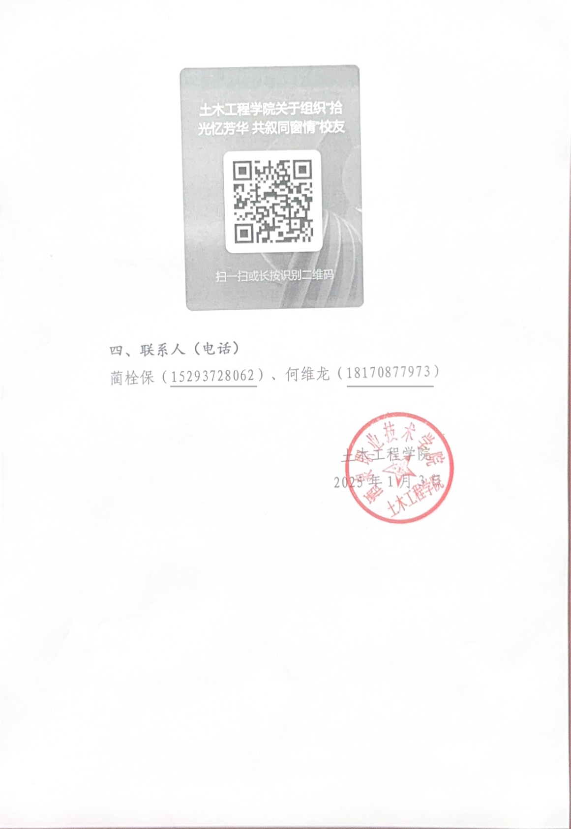 土木工程学院组织“拾光忆芳华,共叙同窗情”校友开放日活动邀请函