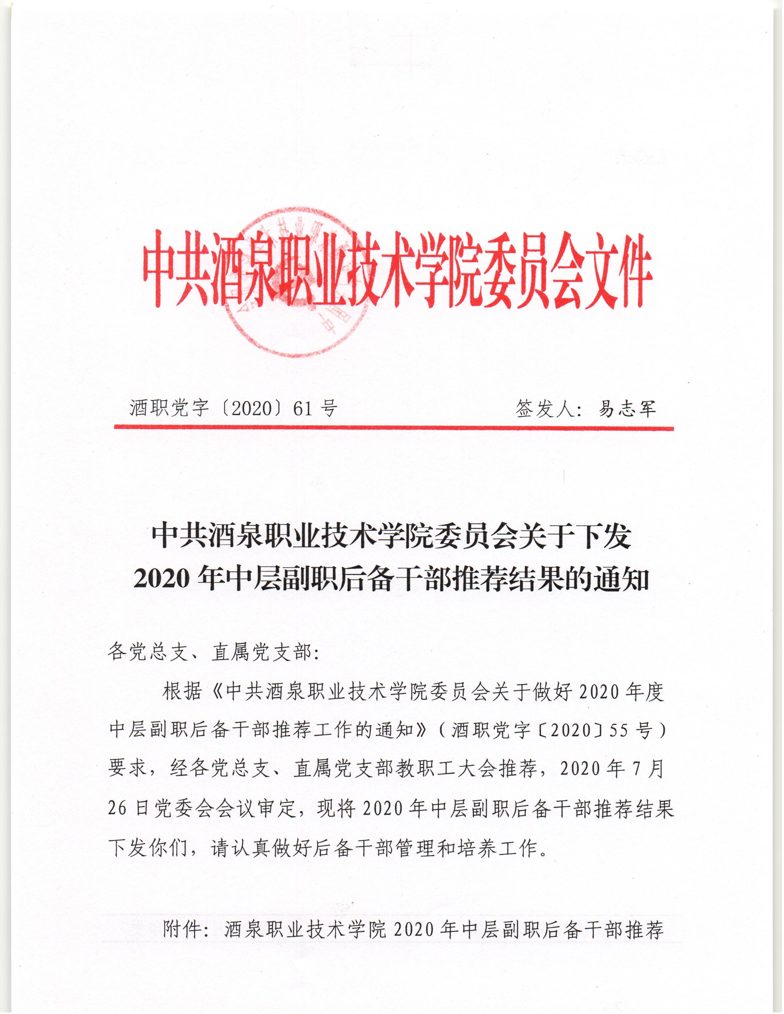 附件: 酒泉职业技术学院2020年中层副职后备干部推荐汇总表.xlsx