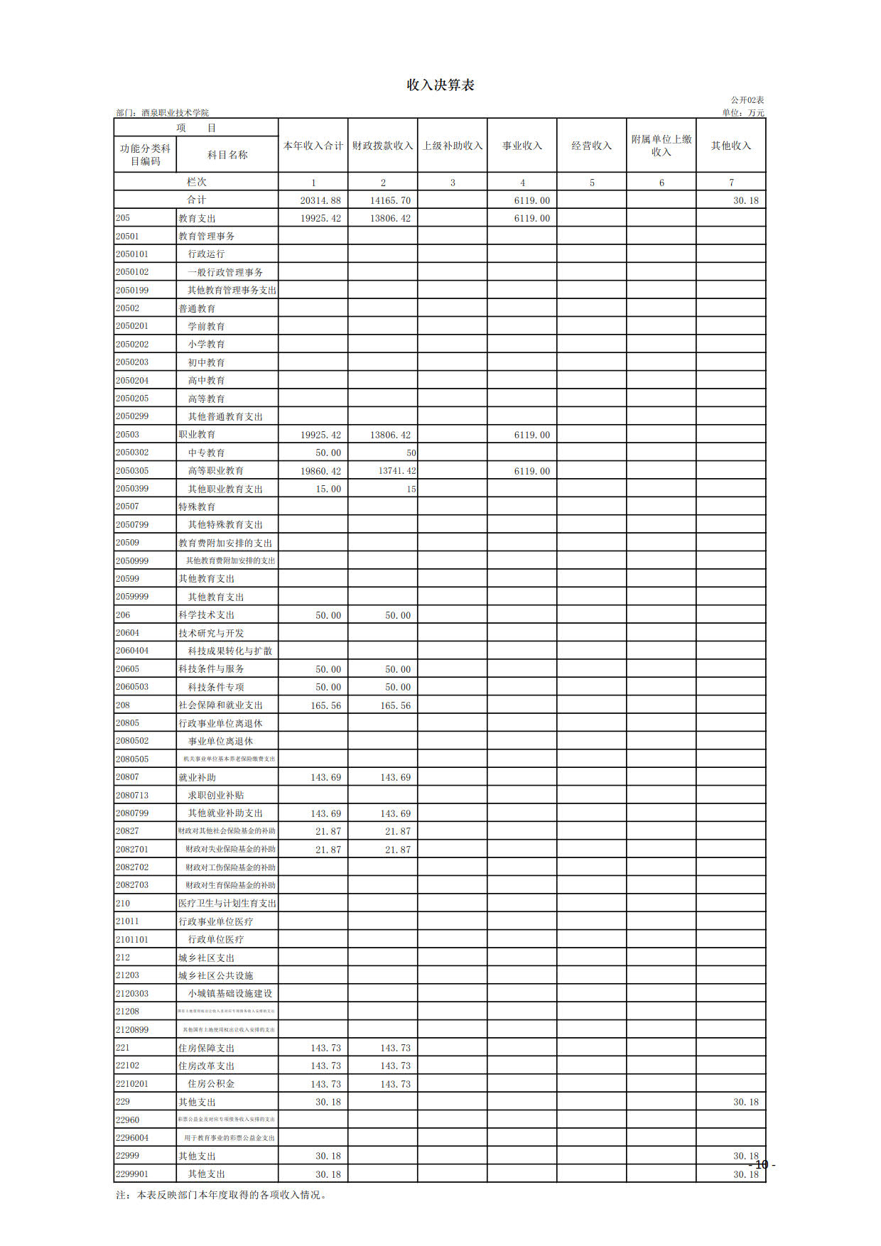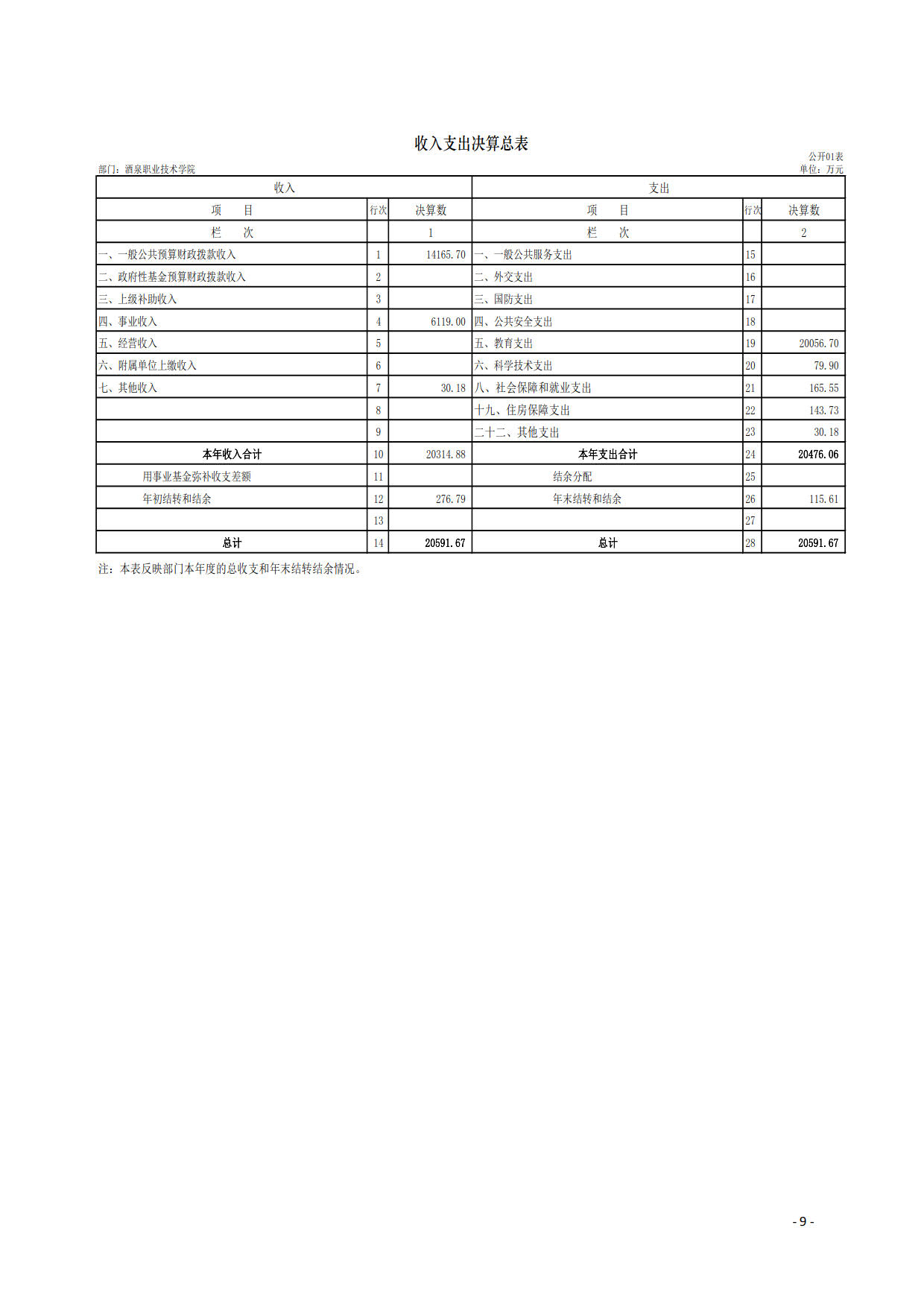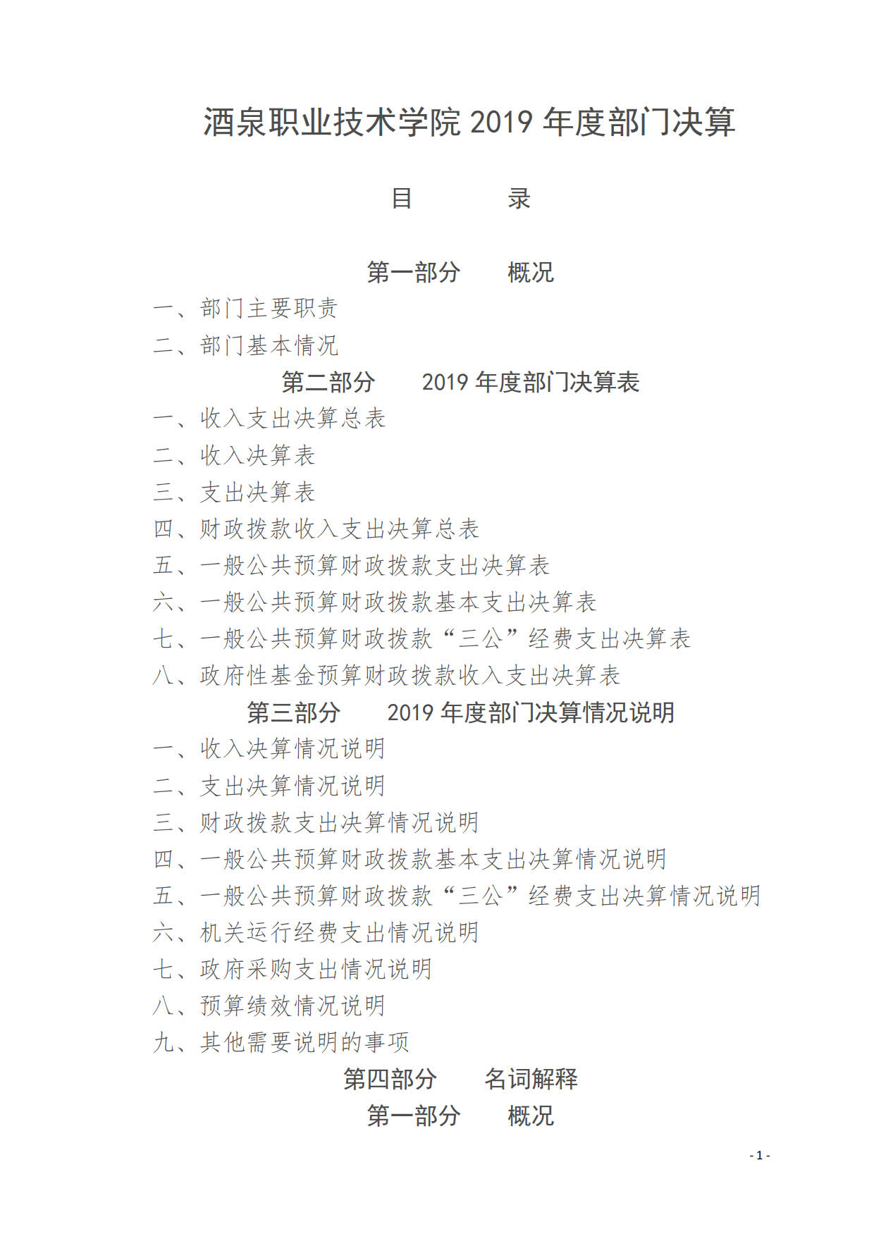 酒泉职业技术学院2019年度部门决算