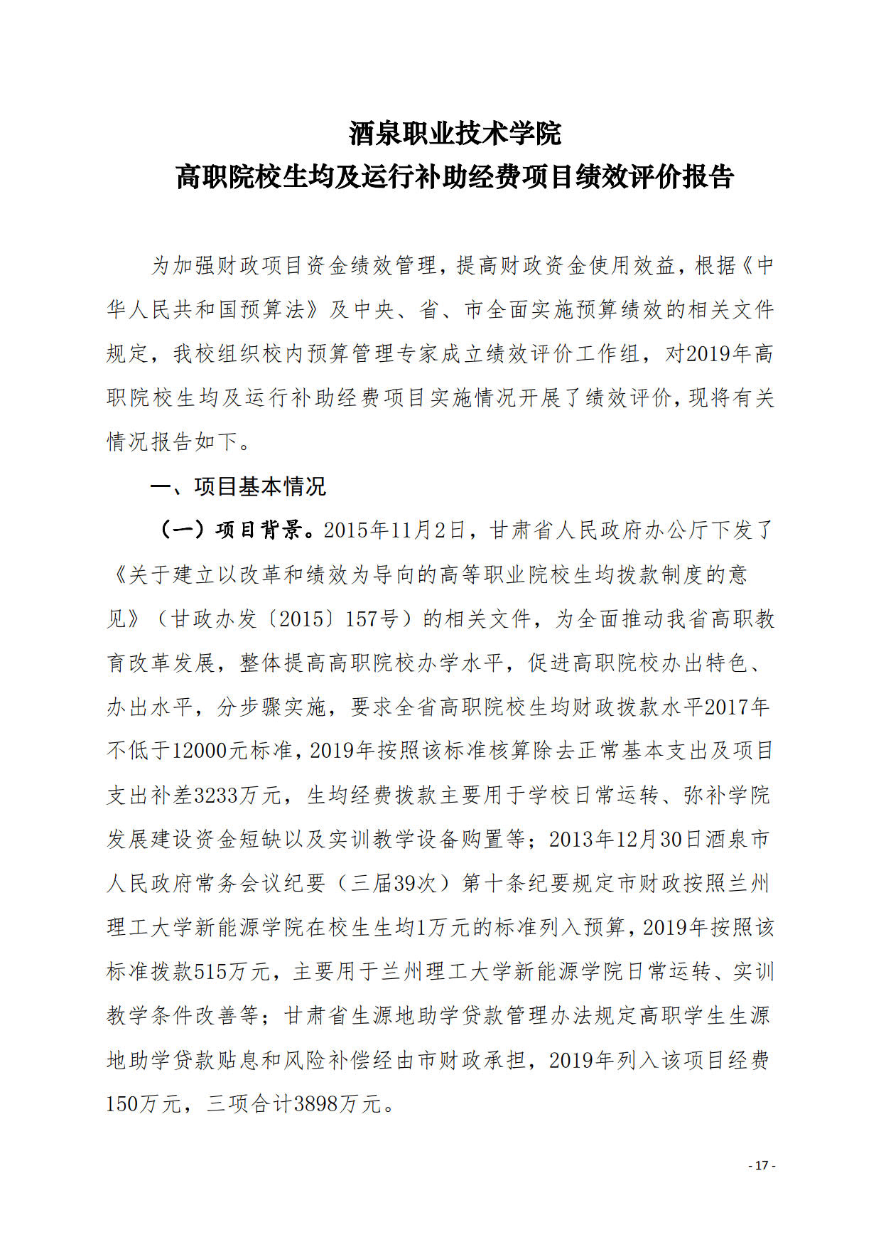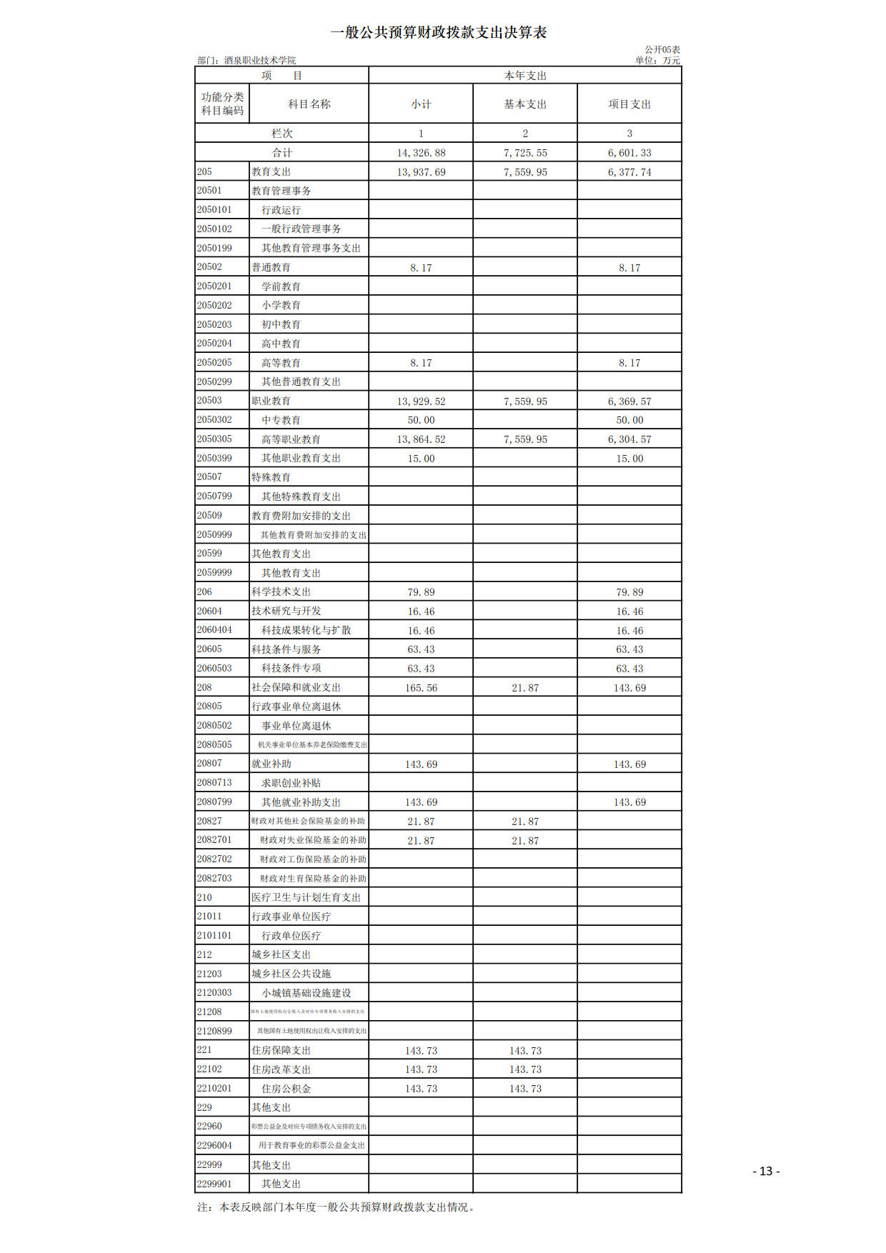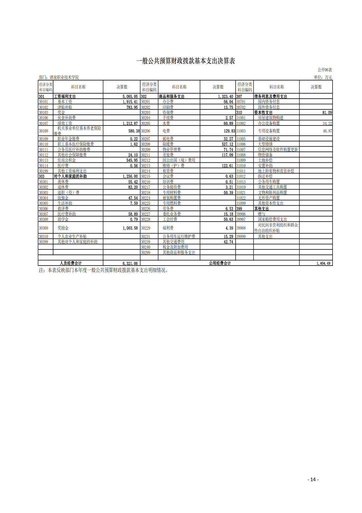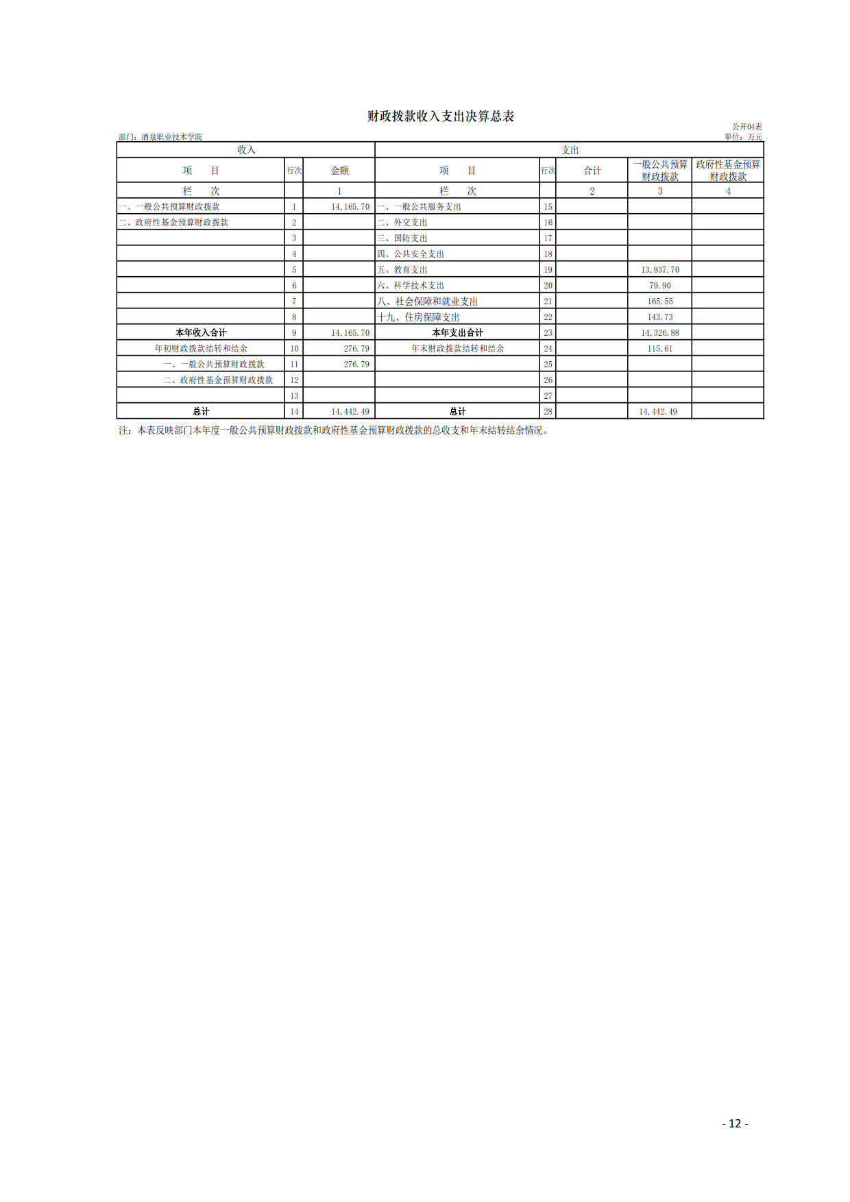 酒泉职业技术学院2019年度部门决算