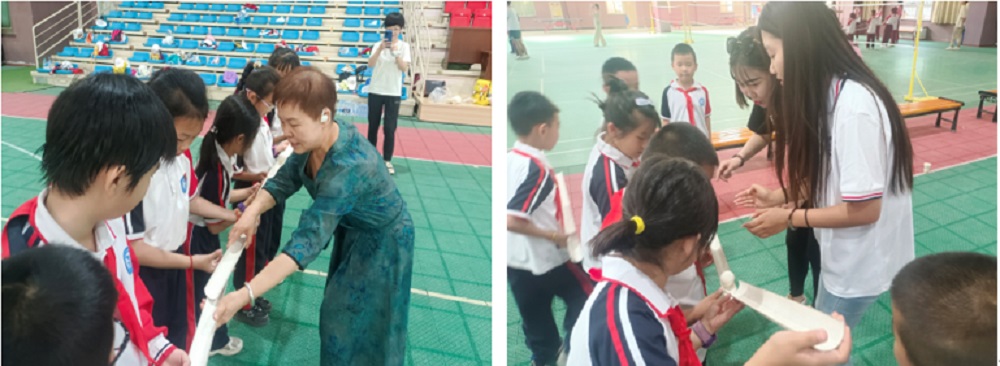 现场体验,增强实践教学时效性。研学旅行管理与服务专业一方面深入挖掘校内资源,与其他学院开展联动合作,利用特色晚自习开展校园导游讲解活动,以实习讲解的方式提升学生学习效能;另一方面积极开展并参与校园研学活动。6月7日,酒泉市新苑学校236名三年级学生来到学校进行研学活动,研学旅行管理与服务专业学生积极参与,拓宽了学生视野,提升了学生的综合素质;6月11日,组织酒泉师范附属小学90人开展“寻爱国印记、做追光少年”——酒泉师范附属小学爱国主义教育主题研学活动。通过组织开营出发、研学启航、开营宣誓、安全教育、研学之旅等环节,开展爱国主义教育、升国旗、素质拓展等活动,让小学生理解热爱祖国的深刻含义、把爱我中华的种子埋入每一位学生的心中。以现场体验的方式激活学生技能提升向“最大增量”转变。