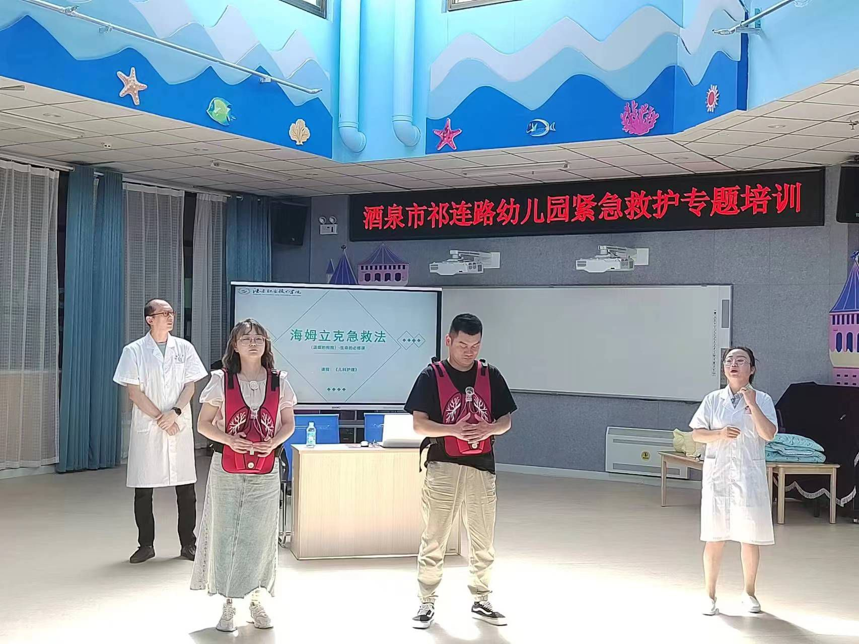 为强化“人人学急救、急救为人人”急救理念,进一步普及急救知识,增强幼儿教师急救意识及面对意外伤害时应急处置能力。6月16日早晨,酒泉职业技术学院医学院教师走进酒泉市祁连路幼儿园,开展“练‘救’真本领,健康同心圆”急救技能培训。
