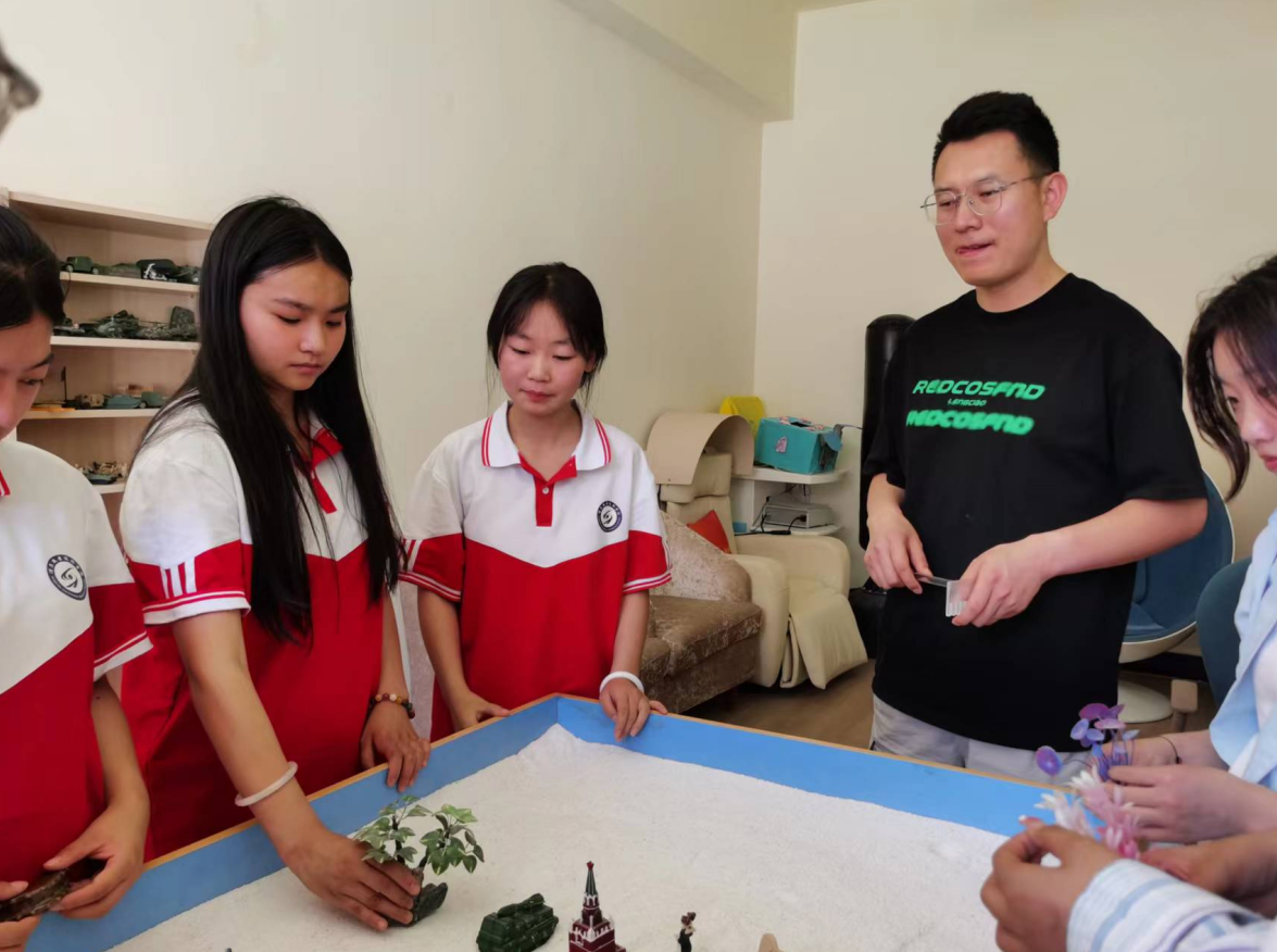 沙盘游戏中,夏老师首先向同学们详细讲解了心理沙盘的基本原理和操作方法,随后同学们在夏老师引导下将一个个充满象征意义的物件摆放在沙盘上,根据自己内心的真实感受尽情发挥想象,构建出各自独特的场景。沙盘构建完成后,同学们积极分享了自己的作品和创作过程,并分享了自己在团体沙盘过程中的内心体验、矛盾之处、情感变化。