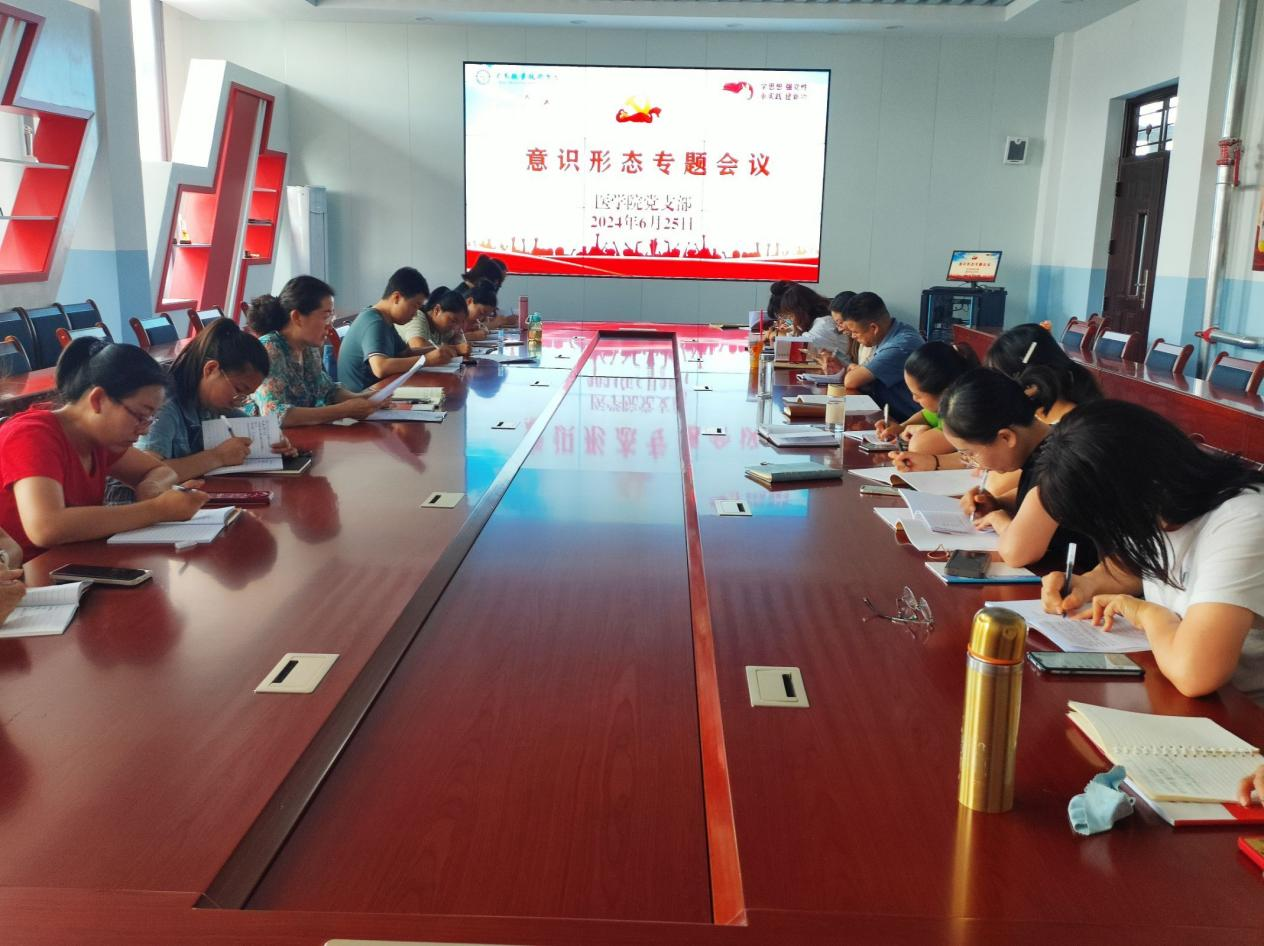 6月25日,医学院党支部召开意识形态专题会议,会议由医学院党支部副书记段国萍主持,全体教职工参会。