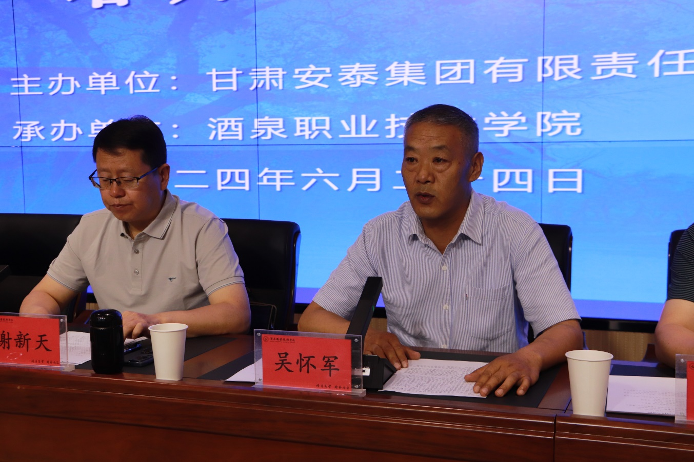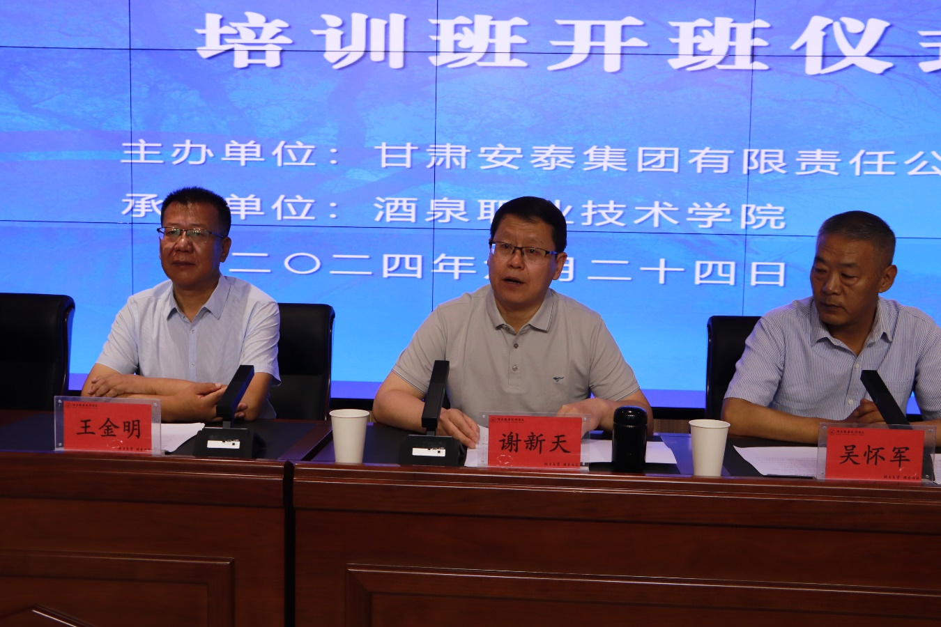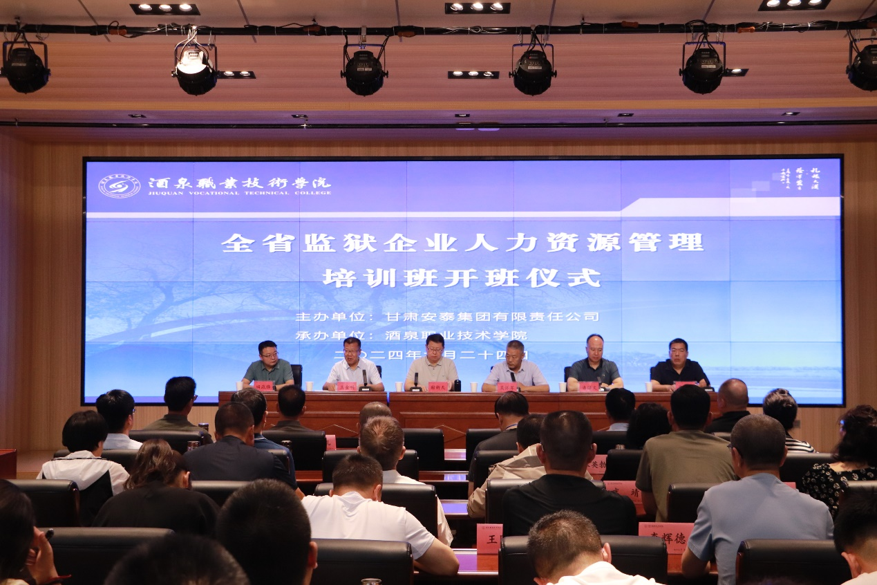 2024年6月24日早晨,全省监狱企业人力资源管理培训班开班仪式在我校弘毅楼C座102(启明厅)成功举行,此次培训由甘肃安泰集团有限责任公司主办,我校土木工程学院承办。出席此次培训班开班仪式的领导有甘肃安泰集团有限责任公司副总经理谢新天同志,酒泉监狱党委书记、监狱长吴怀军同志,酒泉职业技术学院党委委员、副校长王金明同志,甘肃安泰集团有限责任公司综合管理部部长潘继文同志,酒泉职业技术学院培训处处长张祥同志,酒泉职业技术学院土木工程学院党支部书记、院长田政锋同志,还有参加本次培训的甘肃省各监狱企业管理人员共计62名。
