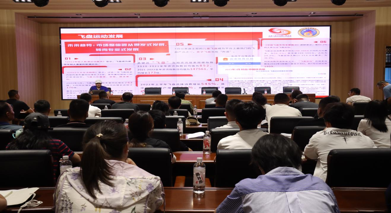 院系动态 > 正文为进一步推动全民健身新兴项目—飞盘运动在我省的推广、普及与发展,配合甘肃省首届飞盘公开赛举办,提升我省飞盘运动裁判员和运动员的专业水平,7月3日,由甘肃省社会体育管理中心主办,我校体育与健康学院承办的“甘肃省飞盘初级教练员和三级裁判员培训班”在弘毅楼启明厅成功举办。