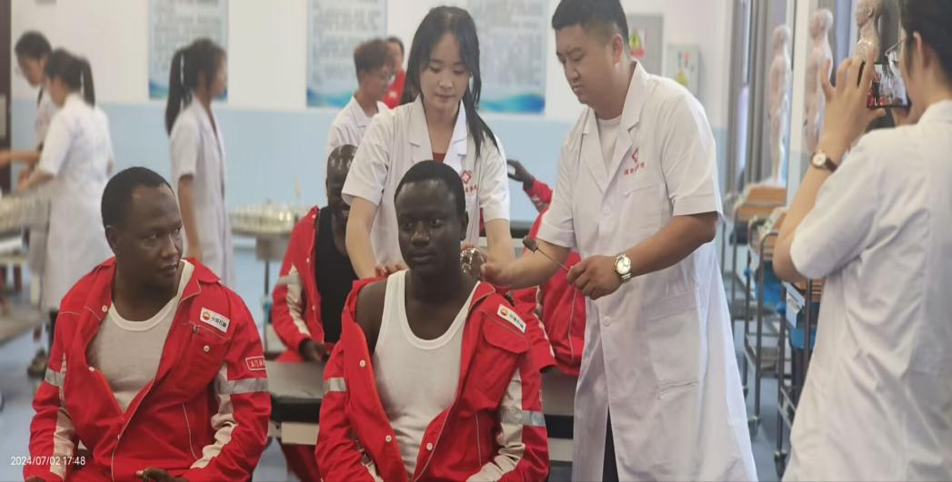 随后,体验活动正式拉开序幕。学员们在专业老师和针灸推拿班学生的指导下,亲身体验了针灸、推拿、拔罐等传统中医治疗手法。针灸,以其精准的穴位刺激,帮助调节人体的气血平衡;推拿,通过专业的手法,缓解肌肉紧张,促进血液循环;拔罐,利用负压原理,达到舒筋活络的效果。每一种手法都让参与者感受到了中医的神奇魅力。