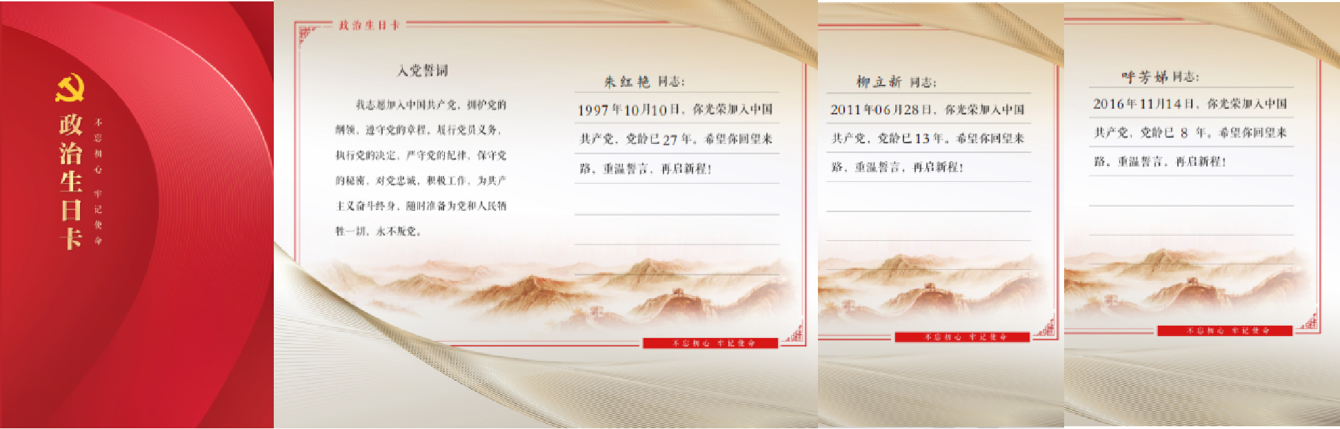 开展“党员政治生日”主题党日活动,柳立新为全体党员赠送“政治生日贺卡”,并带领全体党员重温入党誓词。教育引导全体党员强化党的意识、党员意识。