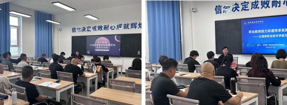 酒泉市文旅局四级调研员纪孟祥进行讲座 酒泉职业技术学院王权朝进行《职业教育助力非遗传承实践路径》讲座