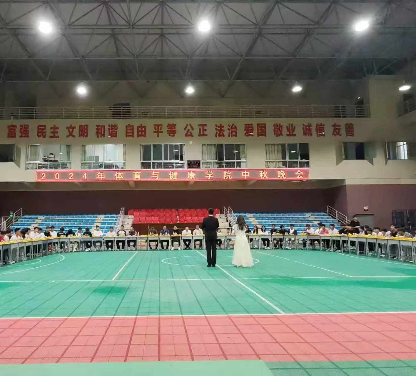 金秋飒爽,桂花馥郁,为传承中华传统文化,增进师生情谊,体育与健康学院于9月17日晚隆重举行了中秋师生联欢会。院领导、班主任及教师代表共同参与了此次活动。活动在融洽温馨的气氛中启动,满载喜悦与感动,充分展现了我院师生对中华优秀传统文化的坚守与敬重。