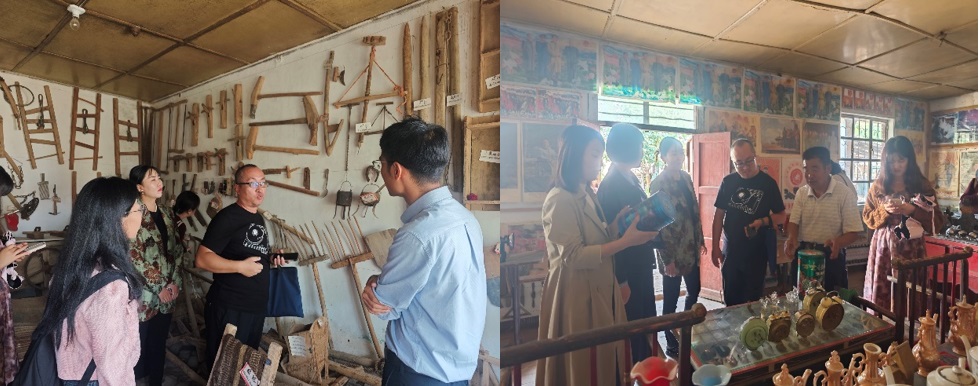 上坝乡村记忆博物馆由红色记忆、纪念章货币、民俗物件、文件账簿、报刊杂志、农耕工具、古旧家俬七个展厅组成。在管理员的带领下,大家领略了每个展厅的主题以及收藏物件的来历和背后的故事。调研教师们认真聆听讲解,随后进行了深入的交流,教研团队听取了企业负责人关于博物馆相关情况汇报,双方就博物馆陈展方案、博物馆导游词创作等问题进行深入探讨。