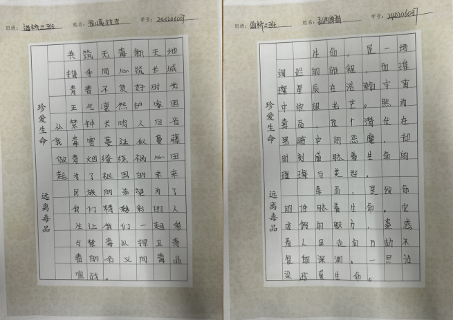 作为系列活动中的一大亮点,禁毒书法、海报设计大赛吸引了众多学生踊跃投稿。同学们充分发挥创意,运用各种设计元素,创作了一系列既具视觉冲击力又富含深意的作品。这些作品不仅传递了“远离毒品”的强烈呼声,也展现了当代大学生的艺术才华和社会责任感。