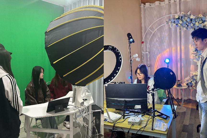 走访过程中,学生们参观了公司产品展示厅、直播孵化基地、网络直播室等,聆听了九臻员工现场为学员演示如何进行文案设计、海报制作、视频剪辑以及引流推广等内容的讲解,并观摩进行中的直播活动,利用企业直播间及直播账号,根据自己的专业方向和日常积累进行实地试播训练。