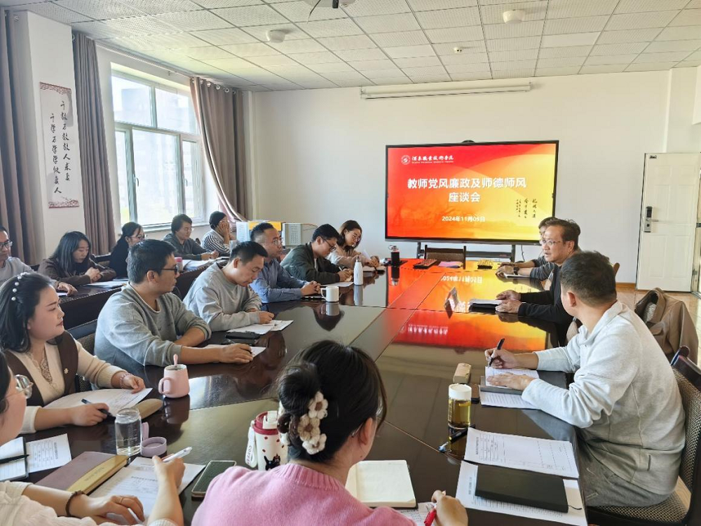 2024年11月5日下午,学校党委委员、纪委书记、省监委派驻酒泉职业技术学院监察专员、四级高级检察官魏韡莅临我院与青年教师开展以师德师风为主题的座谈会。