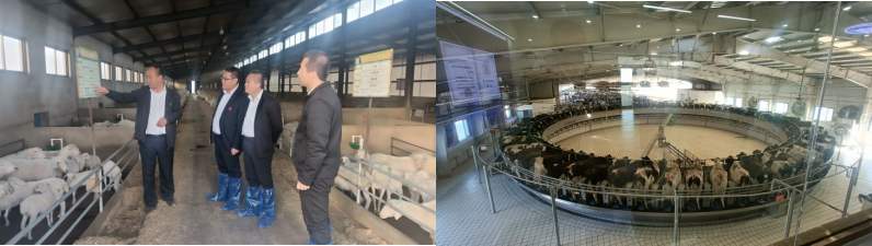 调研团队一行在相关企业负责人的陪同下,首先参观了祁牧乳业有限责任公司良种奶牛场、80位自动转盘式挤奶车间、胚胎移植技术实验室、智慧牧场监控中心以及铭鑫羊业酒泉分公司肉羊繁育车间、自动称重分选系统以及无抗日粮配方筛选、肉羊杂交改良研究等在研科技项目实施情况。随后调研团队分别与相关企业总经理、技术部门负责人进行交流座谈,寻求合作的切入点和契合点。相关企业负责人详细介绍了本公司主营产品、研发方向、技术需求、市场前景、发展瓶颈等情况,调研团队详细了解了企业在实际生产、技术应用及人才培养等领域的需求与痛点。
