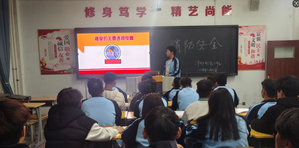 演练前,学院组织班主任为学生开展了消防知识安全主题班会。讲解了应急疏散演练的必要性以及发生火灾的逃生技巧,如湿毛巾捂口鼻、低姿态前进等,强调了预防为主、防消结合的重要性。