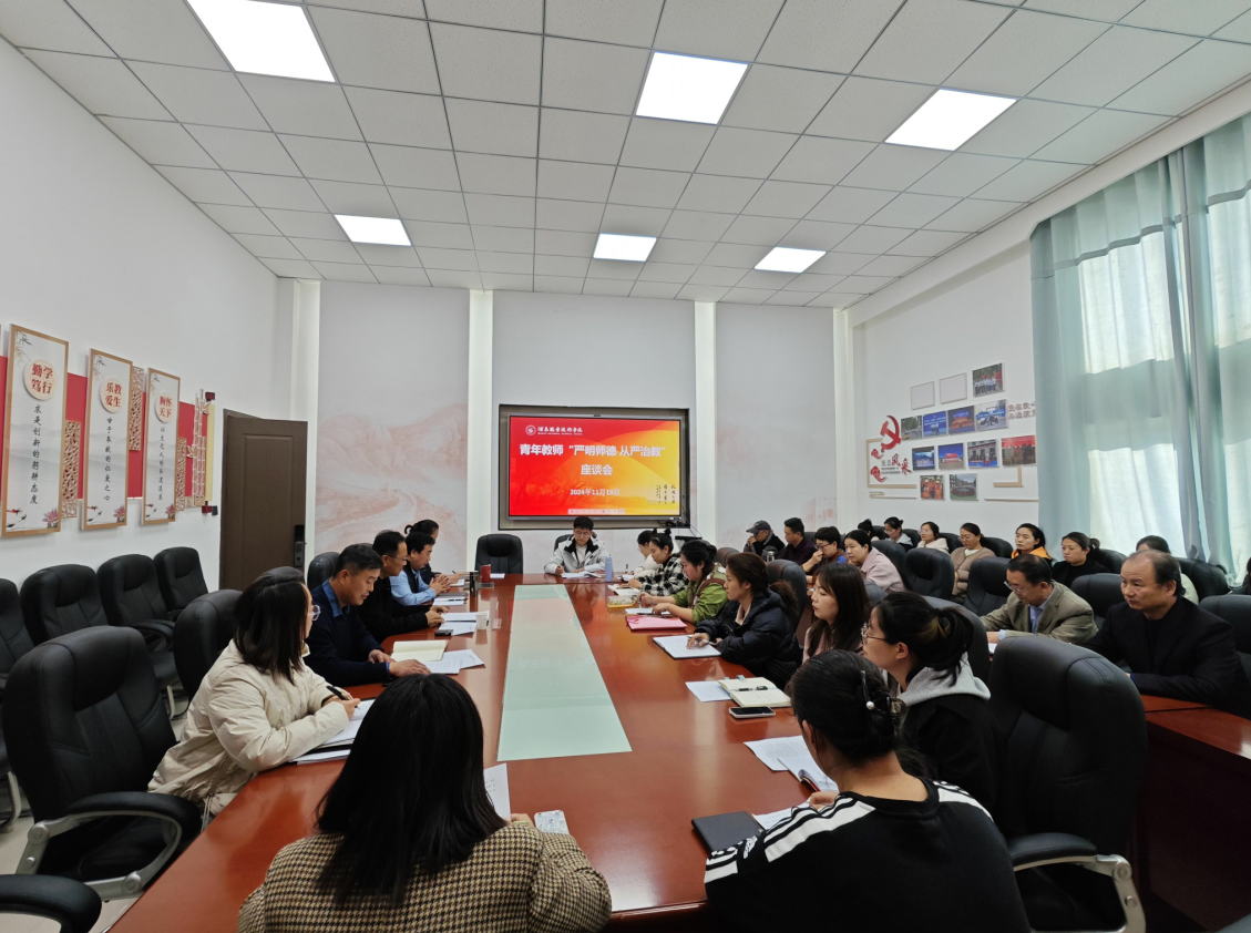 为进一步加强教师职业道德修养,教育引导教职工以廉修身,从严治教。11月19日下午教育与艺术学院开展青年教师座谈会,学校党委委员、纪委书记、省监委派驻学校监察专员魏韡参加座谈,活动由学院党支部书记、院长赵多生主持,全体教职工参加。