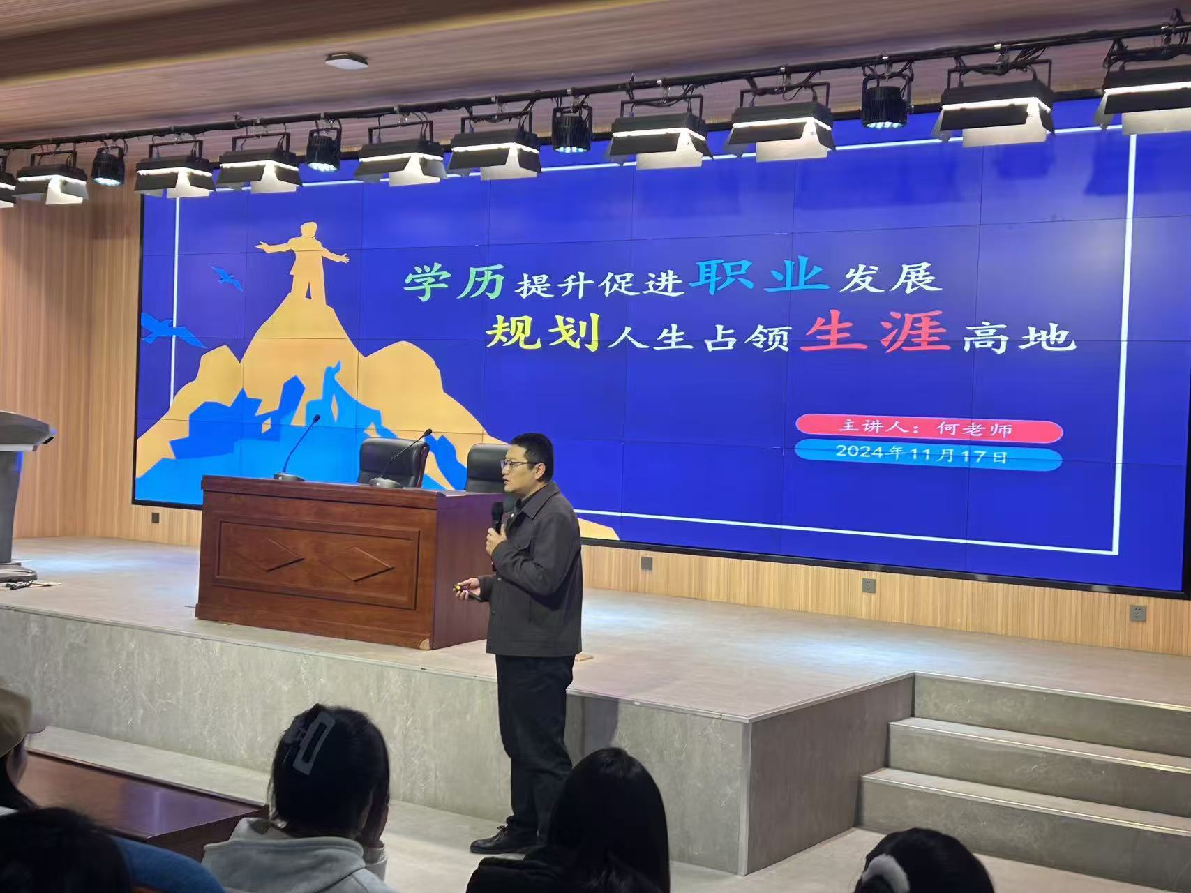 讲座中,何老师围绕“为什么要做职业生涯规划、如何做好职业生涯规划”等问题,详细地向同学们分析近年专升本形势以及历届藏族学生的就业情况。为同学们职业发展和职业规划提出建议,告诉同学们大学三年要积极参加社会实践活动,充分挖掘自身潜能,不断提升综合素质,精准做好自我定位。希望同学们尽早规划好个人职业生涯发展,明确目标,积极就业。