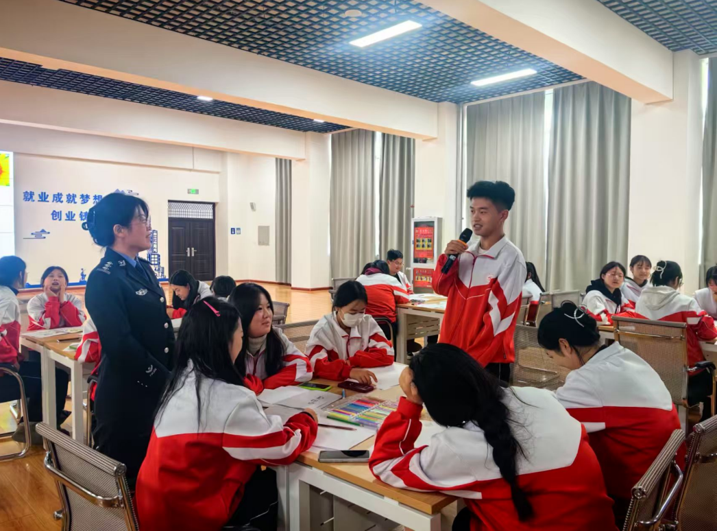 活动前,刘警官以“孤掌难鸣”游戏进行热身,同学们积极配合,拉近彼此距离。活动中刘警官讲明游戏规则,以“我是谁”“团体我——手撕画组合”“重要我——宫格画”三种绘画形式开展活动,现场氛围轻松融洽,在活动过程中同学们相互探讨、互相鼓励,进一步认识自我、探索自我。活动结束后,刘警官邀请每组同学分享感悟,并鼓励同学们自由表达内心世界,从多个视角去认识自己和了解他人。