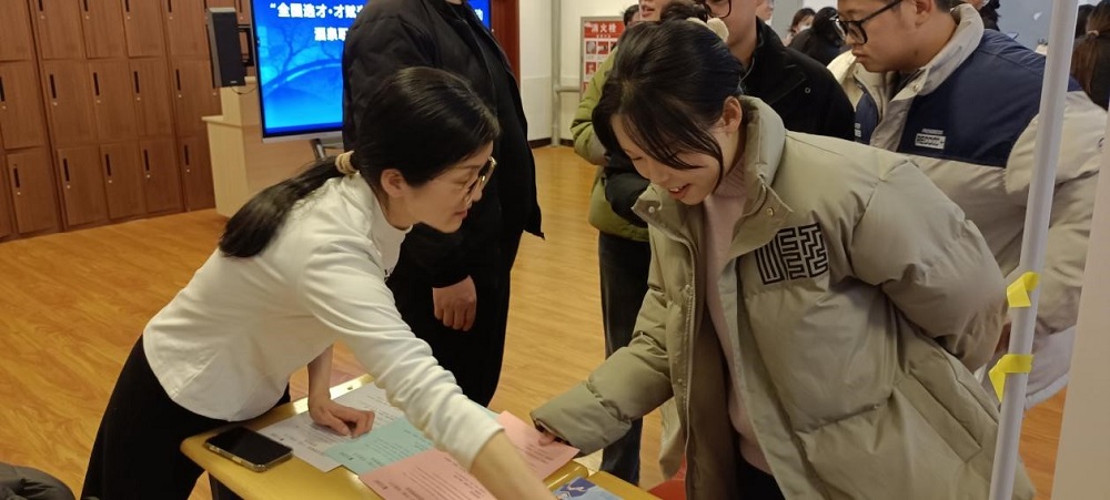 院系动态 > 正文12月19日,宁波市奉化区人才中心携区内优质企业走进酒泉职业技术学院,举办了“全国选才・才赋奉化”秋季赴外系列招聘活动专场招聘会,吸引了旅游与烹饪学院、经济管理学院、土木工程学院学生踊跃参与。此次招聘会为校企双方搭建了高效的沟通桥梁,促进了人才资源的精准对接与交流合作。