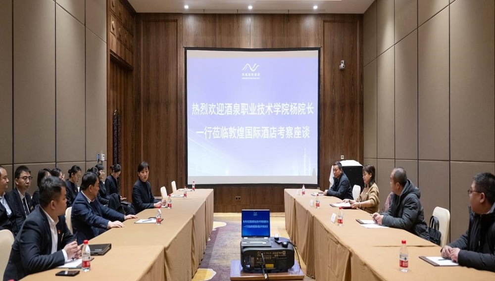 杨蕊肇副院长一行先后走访了敦煌文旅集团、敦煌国际大酒店有限责任公司、甘肃演艺集团文旅有限公司(乐动敦煌)、敦煌国际会展中心等13家知名酒店和旅游企业,深入了解企业运营模式、人才需求、岗位设置等情况,并与企业负责人就人才培养、课程设置、实习实训等方面进行了深入交流。