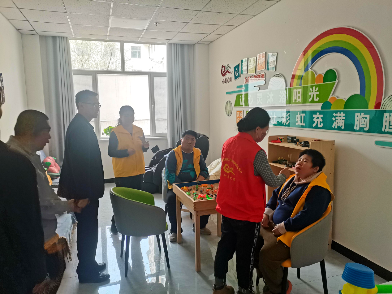 在托养中心工作人员的热心讲解下,先后实地考察了康复训练室、生活照料区、文体活动室等多个功能区域。对托养人员的生活起居、康复训练进度以及中心的运营管理模式有了深入的了解。