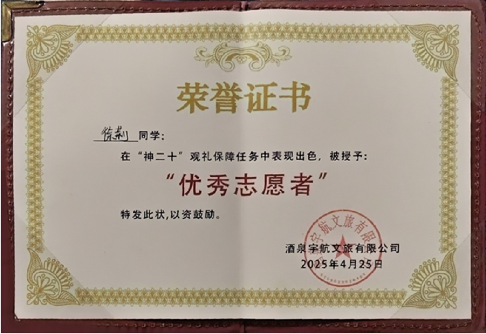 在神舟二十号载人航天任务中,我院志愿者主要承担餐饮保障、观礼引导、科普讲解等工作。在东风宾馆后厨,志愿者严格遵循航天级食安标准,24小时待命应对突发需求,以精准协作保障5000余人次供餐;在酒泉文旅观礼团队跟车讲解过程中,志愿者向2000余名游客科普航天知识,组织多场观礼引导服务。