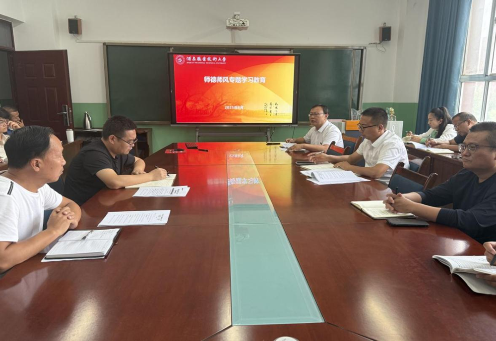 在职业教育“育人先育德”的理念指引下,师德师风建设专题培训随即展开。培训以“大力弘扬教育家精神”为开篇,激励全体教师以教育家为榜样,潜心育人,引导教师践行职业教育使命;随后通过解读《新时代高校教师职业行为十项准则》、剖析教育部违反师德师风典型案例及学校相关制度,聚焦非教学类、教学类师德师风正反面典型案件、违规兼职、学术不端、猥亵学生等关键问题以案说法,强化教师底线意识;最后,全体教职工对照准则开展自我检视,并签订《师德承诺书》,以实际行动坚守育人初心。