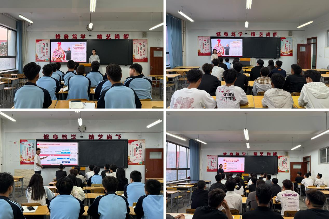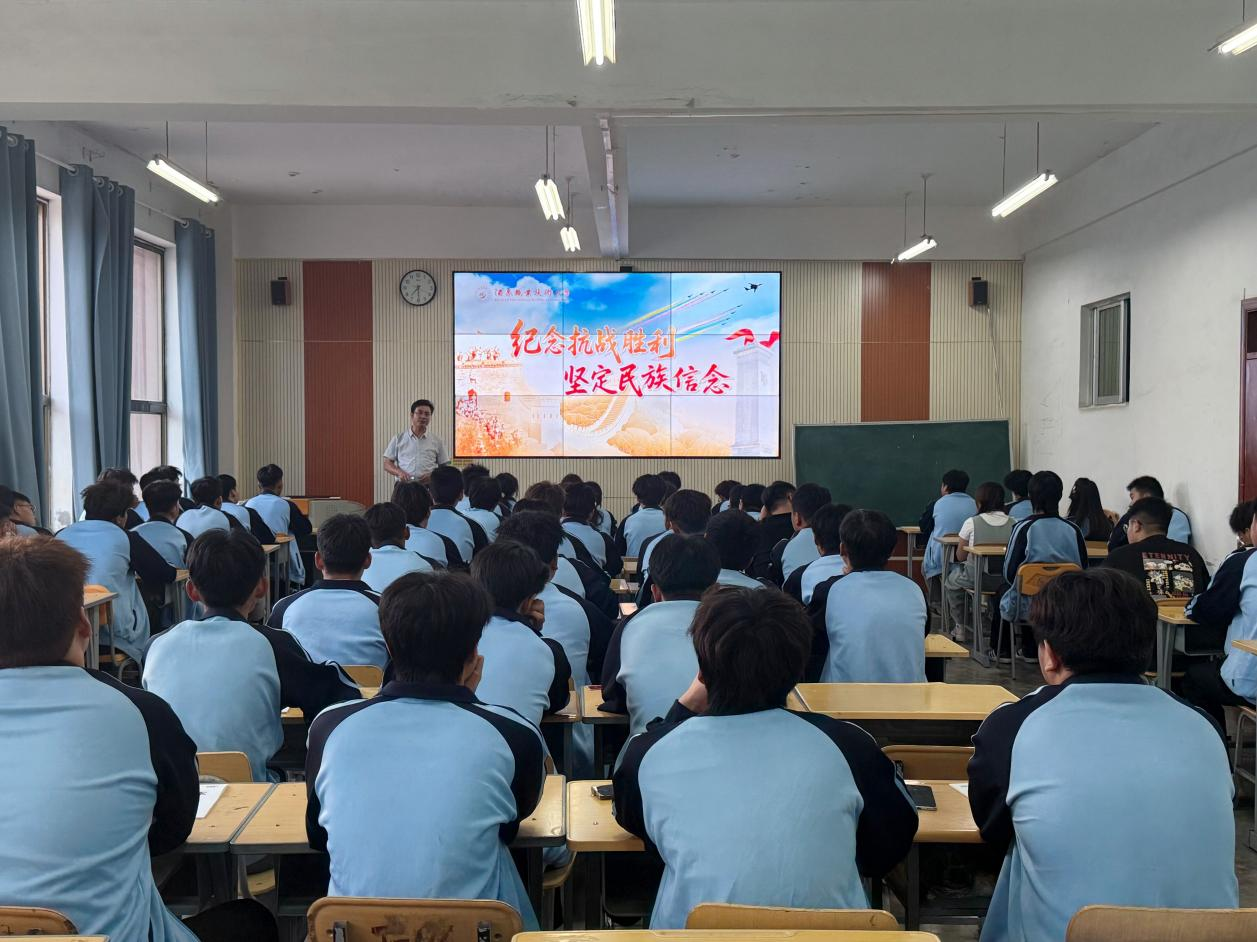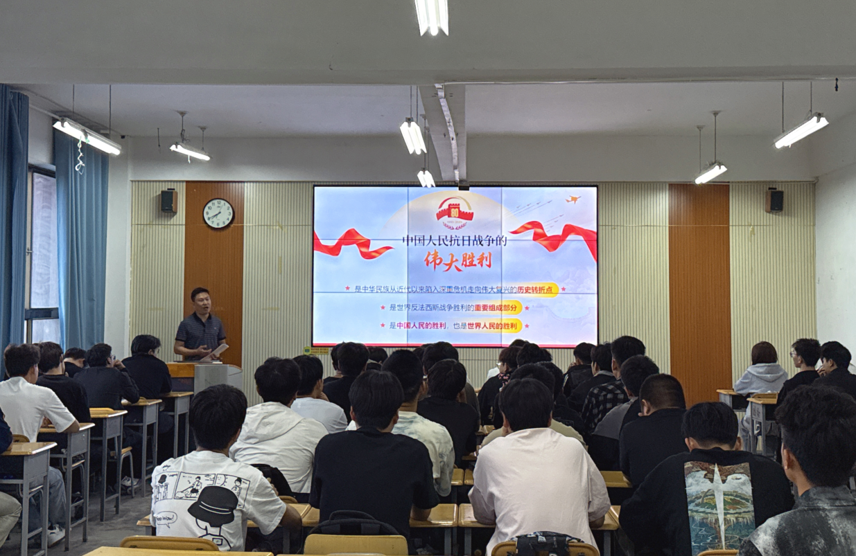 本次活动采取“领导带头、全员参与”的组织方式,学院领导班子成员分别深入对应联系的系部和班级开展讲授,其余班级由班主任同步组织授课。授课教师围绕“铭记历史 正义必胜”“民族壮举 浓墨重彩”“精神丰碑 永不磨灭”“珍爱和平 开创未来”四大核心篇章,借助丰富的历史资料、珍贵的影像记录和感人的抗战故事,多角度深情回顾了中华民族在烽火岁月中表现出的巨大勇气与牺牲精神,深刻阐释了伟大抗战精神的时代内涵与现实意义,并引导学生深入思考如何在新时代继承和弘扬这一宝贵精神,将爱国之情转化为刻苦学习、报效祖国的自觉行动。