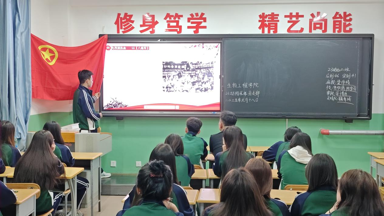 活动中,各支部组织观看了《勿忘九一八》等历史纪录片片段,悲壮的历史画面深深触动了每一位在场团员。在随后的讨论环节,团员青年们踊跃发言,结合自身专业学习与未来规划,畅谈如何将爱国主义情怀融入实际行动。大家一致认为,作为生物工程领域的新时代青年,更应铭记“科技强国”的使命,将个人发展融入国家发展大局,努力钻研专业知识,勇攀科学高峰,以实际行动践行“请党放心,强国有我”的青春誓言。