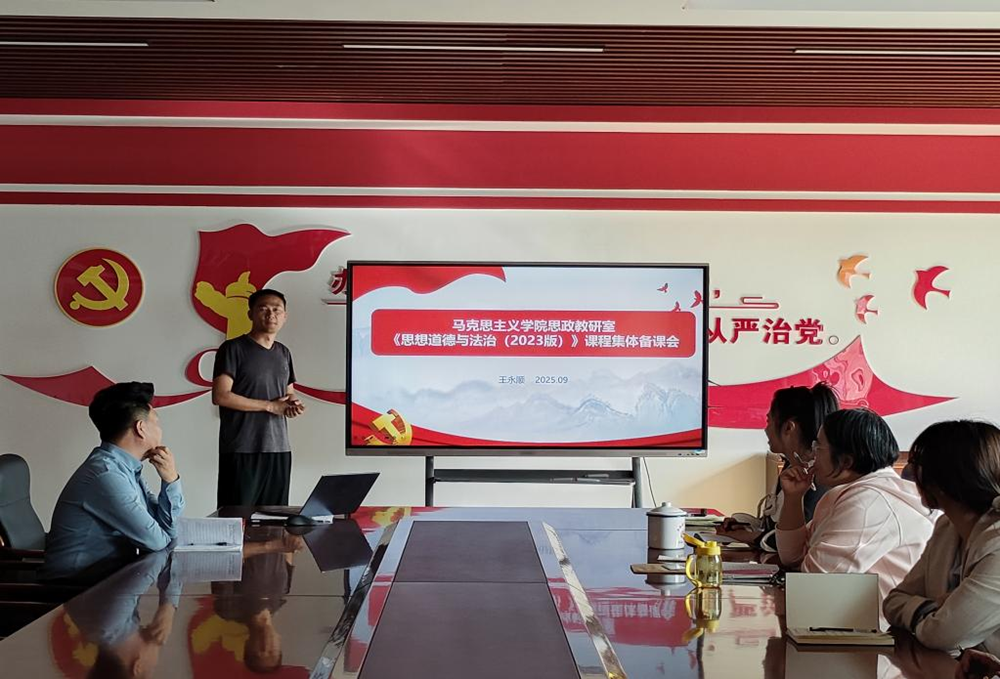 为深入贯彻习近平总书记关于思政课建设的重要指示批示,落实新时代立德树人根本任务,进一步提升思想政治理论课教学质量与育人水平,马克思主义学院在明理楼208会议室成功举行了2025年秋季学期“思想道德与法治”集体备课会。教研室全体教师围绕教学关键环节进行了深入研讨与交流。