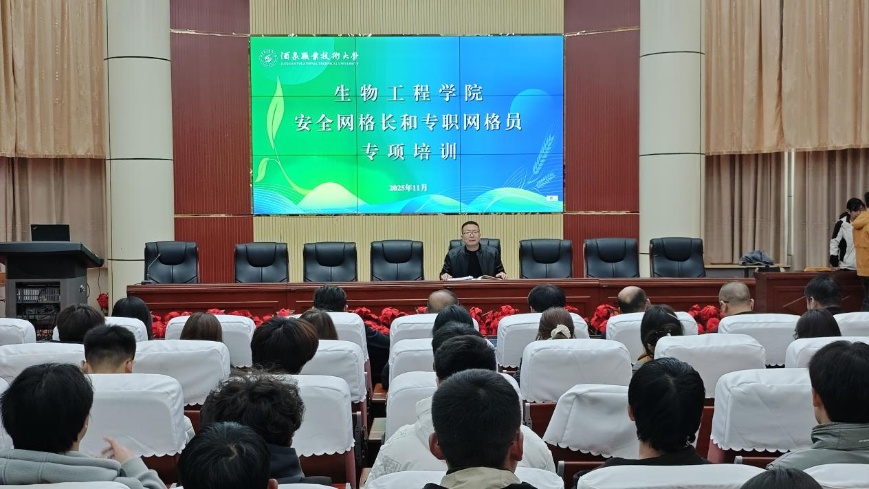 为全面推进学院治理体系和治理能力现代化,落实学校安全网格化管理要求,构建“全覆盖、无盲区、精细化、高效能”的网格管理体系,确保师生安全和校园稳定,11月5日下午,生物工程学院组织召开安全网格长和专职网格员专题培训。学院党支部书记、院长张涛,副院长张又元,全体辅导员、班主任、各班班长及宿舍长等参加培训。会议由张又元副院长主持并担任主讲。