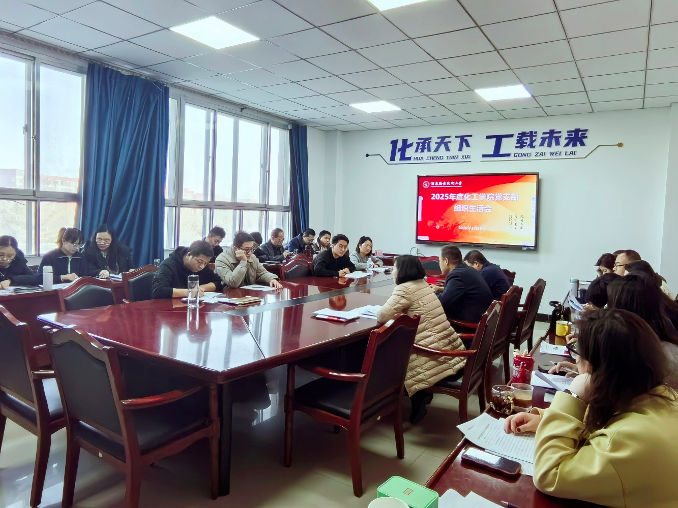 1月15日下午,化工学院党支部召开2025年度组织生活会并开展民主评议党员工作。会议由党支部书记白锦川主持。